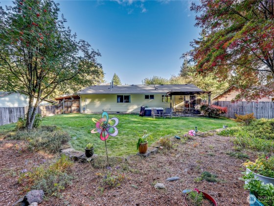 Best backyard award! This one level home has an amazing backyard...fenced, level, private, covered patio, hot tub - a true extension of living & entertaining space! Just as impressive are the updates inside including newer kitchen cabinets, granite countertops, stainless appliances & a moveable butcher block island. The primary features a 3/4 bath & bedroom 3 is versatile as a bedroom or den. Newer minisplits are economical & provide A/C too! Easy care vinyl siding, 2024 hot water tank & a carport round out this turnkey gem! Don't wait on this one!