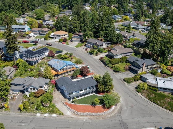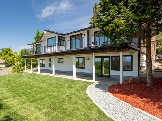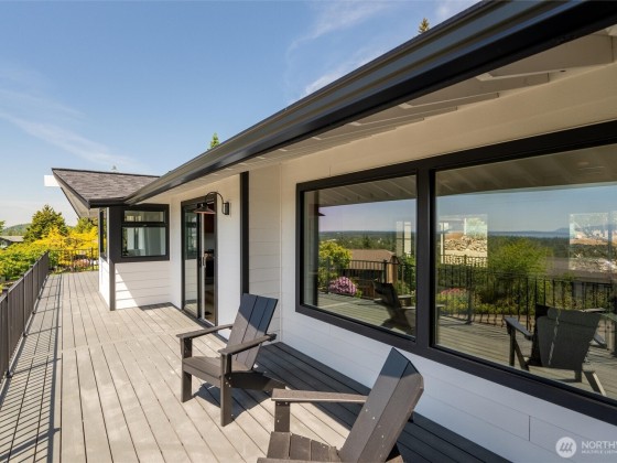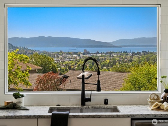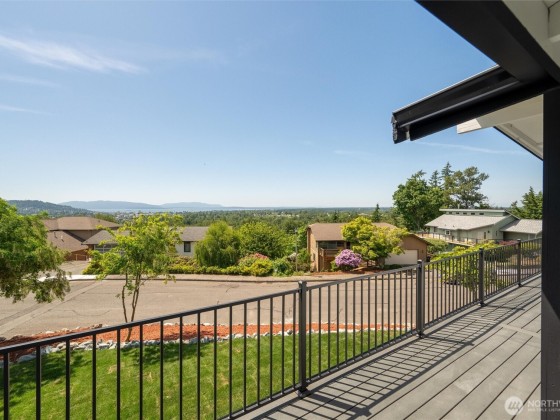 Exquisite Bellingham home with panoramic city & bay views. Vaulted ceilings and expansive windows fill the open-concept living space with light, warmed by gas fireplaces on each level. The primary suite offers deck access, ensuite bath, and walk-in closet with in-room laundry. A versatile main-level bonus room leads to the attached two-car garage. The lower level features a second full living area with walk-out yard access and its own laundry—ideal for guests or multi-gen living. Just minutes from Lake Whatcom and a short stroll to the Interurban Trail system, with the distinction of being in one of the area’s top-rated school districts. Updates include new roof, furnace, ss appliances, deck, patio, driveway, and more. A must-see retreat!