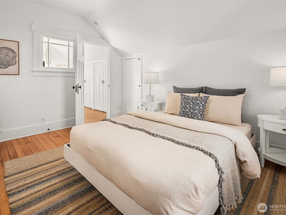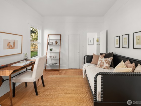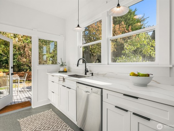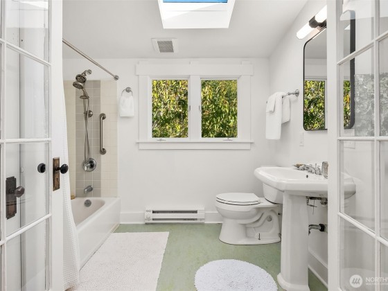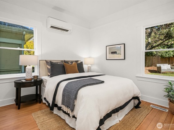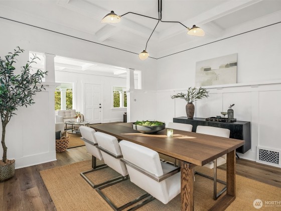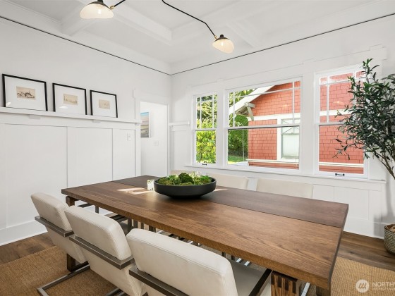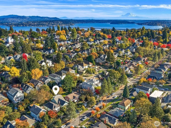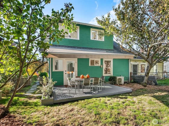 Gorgeous Craftsman with Vintage 1915 charm intact is updated for today with updated electrical (no knob & tube left), Earthquake Retrofit, Mini-splits for heating & AC in 2 of the 4 bedrooms, and a 1-car garage with electric car charger & roof with 50 year shingles. Living & Dining rooms feature 9ft ceilings with beautiful box beam detailing. The wood burning fireplace is flanked with built-ins. The Kitchen w/ new cabinets & countertops opens to a back deck w/ electric awning & heating for all-year outdoor gatherings. Delightful Plum & Cherry trees & tons of garden/play space. The 880sf unfinished basement has an exterior entrance – great storage and future potential. Fab locale, a few blocks to Madrona parks, shops & eateries.