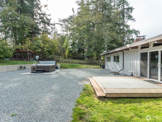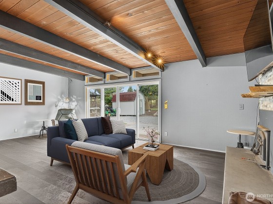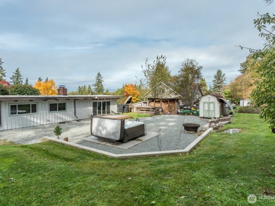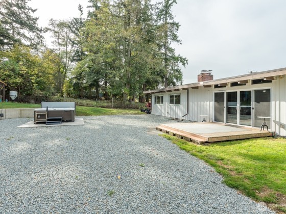 Come relax & enjoy this stylish mid-century modern retreat tucked on a private half-acre. This home sparkles with thoughtful updates that preserve its timeless charm. From the refreshed kitchen with abundant cabinetry & generous concrete counters to the updated bath. Large picture windows frame the natural surroundings & fill the home with light, while luxury vinyl plank flooring & wood fireplace insert with a live-edge mantel add cozy sophistication. Outside unwind on the spacious deck, soak in the hot tub and take in the peaceful setting with nature complete with fruit trees & storage shed. A carport plus bonus space for a home office or workshop complete this inviting property that blends mid-century character with everyday comfort.