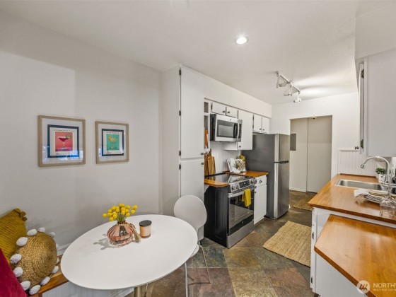 Rare Ravenna location near lightrail, Ravenna Park and local shops and restaurants. Enjoy your bright Mid-Century condo with a bedroom spacious enough to fit a king-sized bed, adorable built-in eating nook off the kitchen and an open concept living space. Kitchen features brand new stainless steel appliances and spacious countertops. Generous partially covered, fenced in patio to enjoy year round! Plenty of storage space in unit. Reserved covered parking space and storage locker with plenty of off street parking as well. Elevator and laundry room on-site.