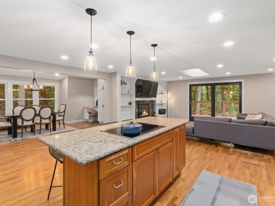 Exquisite one-story home in Issaquah, privately nestled among towering evergreens for a true forest sanctuary feel. Floor-to-ceiling natural light enhances the open, airy layout, blending comfort with modern sophistication. Enjoy serene, wooded views from every room and a rare sense of seclusion within a top-rated school district. Recent upgrades include a new roof (2023), premium heating, cooling, and air purification system, tankless water heater, and updated electrical. The primary suite offers a private bath, and the extended garage provides generous storage or workspace. Conveniently near the freeway, fine dining, and boutique shopping.