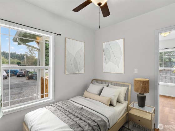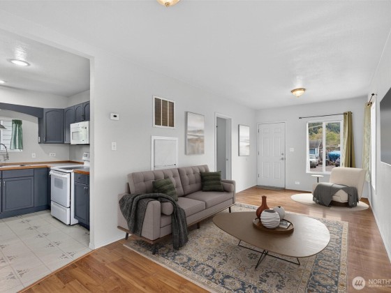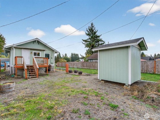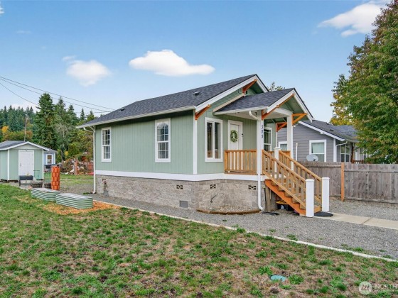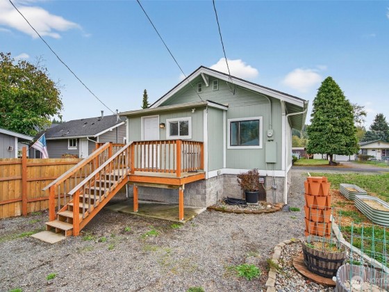Move-in Ready 1Bd 1Bth cottage in Bucoda w/new roof 2024 & 2Bd Septic system. Enjoy valley treetop views from your covered front porch. Features raised foundation, great bones & thoughtful updates. Efficient layout with newer appliances including water heater, stacked washer/dryer, stove, fridge, chest freezer & microwave. Outside boasts 5000 sqft lot, front & back decks, garden shed, driveway parking in front & back, open space for gardening or expansion. Quiet street w/easy access for commuters to Centralia, Tenino & Olympia. Whether you are looking to downsize or invest in your first home this gem offers future flexibility & lasting value.