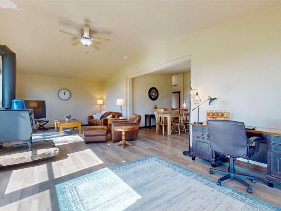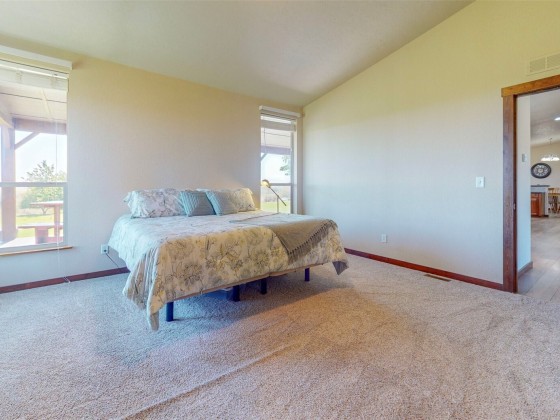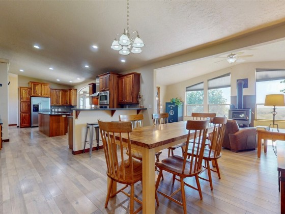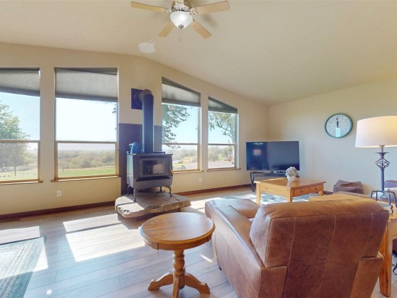 Experience the beauty of country living on this serene 15.37-acre property surrounded by rolling pastures and panoramic views. This 4 BD 3 BA home offers comfort and functionality with vaulted ceilings, laminate wood floors, and a spacious kitchen featuring a large island, pro-grade appliances, and two pantries. Enjoy sweeping views from the family room or relax on the full-length covered deck. The primary suite includes a tiled shower, soaking tub, and walk-in closet. Outside features a Squab Farm generating lease income, pond, barn, and multiple outbuildings—perfect for livestock, hobby farming, or peaceful country living.