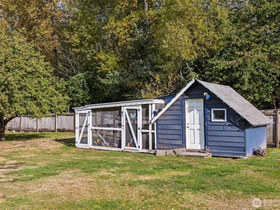 Experience peaceful living in this unique Ponderosa property featuring 80 ft of lake shoreline & endless potential! Situated on a half-acre lot, enjoy a fully fenced yard with gated entry, RV/boat parking, outbuildings including a new shop with tons of storage. This versatile home offers two living spaces with separate entrances—perfect for a home office, guest suite, or multi-generational living. Recently updated with new electrical panel, paint, millwork, flooring, kitchen cabinets & countertops! The main floor includes a spacious primary bedroom & full bath, while upstairs offers two additional bedrooms, a loft area, & a ¾ bath. Chickens can stay! Wired for a generator & full of opportunity, this property is ready for your next chapter!