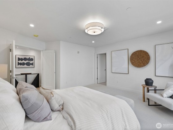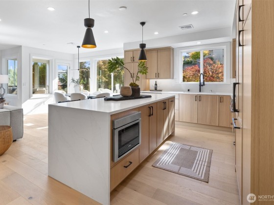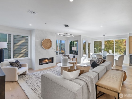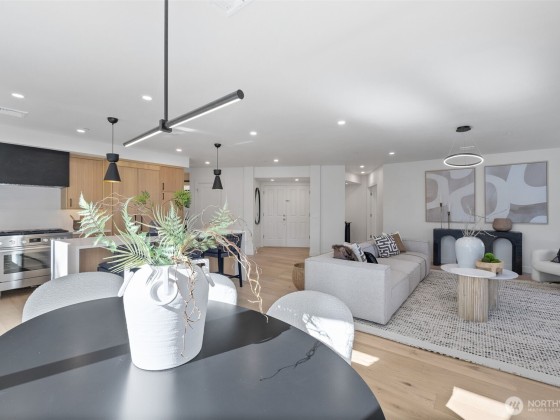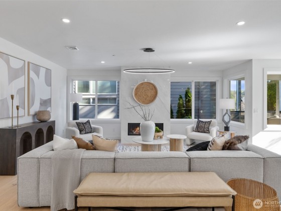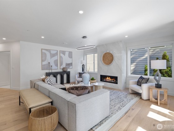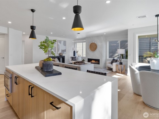 Modern Luxury in the Heart of Kirkland. Rare, fully remodeled condo steps from Kirkland’s marina, shopping, dining, parks. Every inch of this home was reimagined in 2025 by a prof designer to create a stunning blend of style, sophistication, and comfort. This bright, 3-bedroom, 2.5-bath residence features an open layout w/ walls of windows, sleek gas frplc, & large island, perfect for entertaining. The chef’s kitchen impresses w/ hi-end appliances, granite counters, & custom cabinets. Primary suite is it's own private retreat, w/ a spa-inspired bath. Soaking tub, modern shower, heated floors, & huge walk-in closet. Main floor unit of an exclusive 4-Unit building, elevator access from secure garage, 2 parking spaces, & private storage unit.