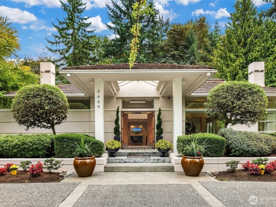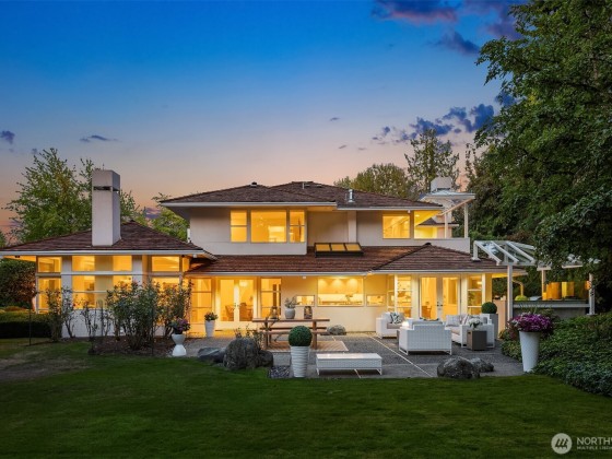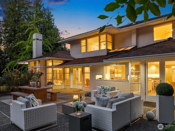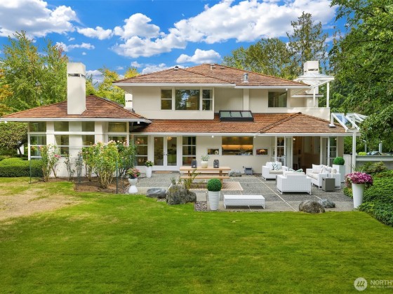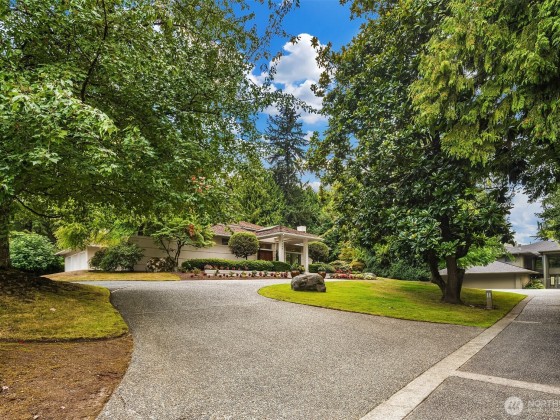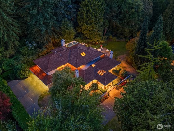 Privately nestled on Evergreen Pt Rd, this timeless Medina modern home welcomes you with a grand entrance and thoughtful architectural design. The open floor plan is designed to flow effortlessly for everyday living, while enhancing the connection to the private, tranquil setting, perfectly framing a delicate peek-a-boo view of the lake. A glass-covered atrium frames the outdoor kitchen, creating a stunning all-season space for entertaining. A versatile main-floor bedroom offers flexibility as a guest retreat, a spacious den features custom bookshelves, a cozy fireplace & rich hardwood floors. The kitchen features classic details, a spacious eating area, and top-of-the-line stainless steel appliances. Serene, refined & endlessly inviting.