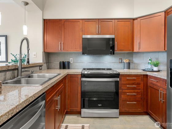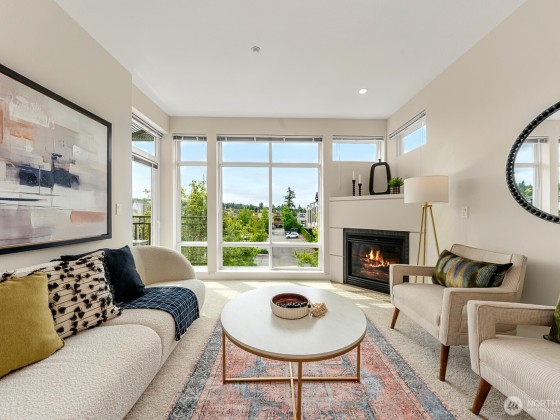 Top-Floor Downtown Kirkland Gem - Lake, Light, & Luxury. Experience the best of downtown Kirkland living in this exceptional top-floor home, just steps from the lake. Floor-to-ceiling windows offer plenty of natural light from the unobstructed southern exposure, while maintaining great privacy. Enjoy high ceilings and a serene balcony on the quiet side of the building. All new carpet, paint, stainless kitchen suite, and smart thermostats in an ideal floor plan featuring a study or home office. Walk to the waterfront, Marina Park, the farmer’s market, boutique shops, and an incredible array of restaurants and grocery stores. A sophisticated, like-new residence in the heart of downtown Kirkland.