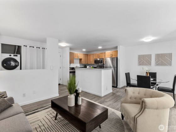 PRICED TO SELL! Fall in love with Fremont and own this inviting, light, and bright 1 bed/1bath TOP FLOOR unit in the heart of Fremont. HOA dues include water/sewer/garbage. Walk to Burke/Gilman trail, PCC Market, & fast transit/bike commutes to DT Seattle, SLU & UW. Open floor plan w/ plenty of storage, W/D in unit. Secure gated off-street parking w/ 1 assigned prk space. New building ext incl. roof, windows, & siding in '17 w/NO REMAINING ASSESSMENTS. Recent interior updates include hardwood laminate thru-out, a fully refreshed bathroom, and a spacious flowing floorplan. Urban-chic living at its finest & most convenient. Pet-friendly w/a walk score of 94!