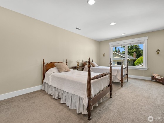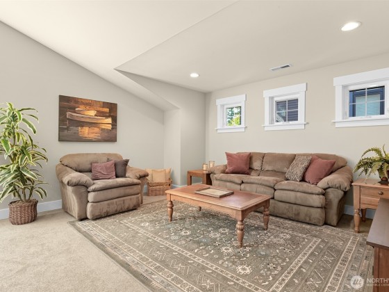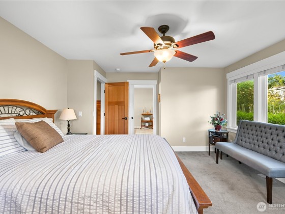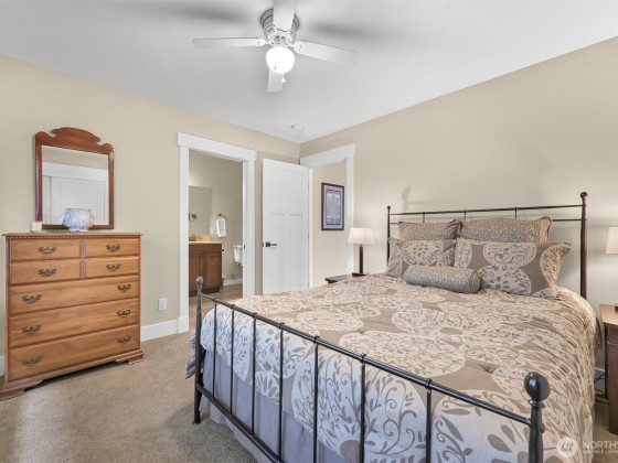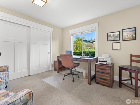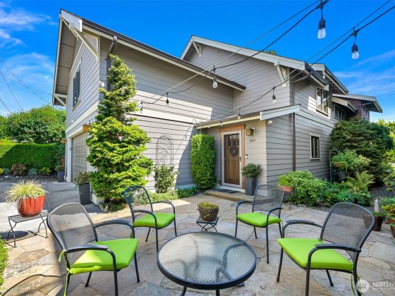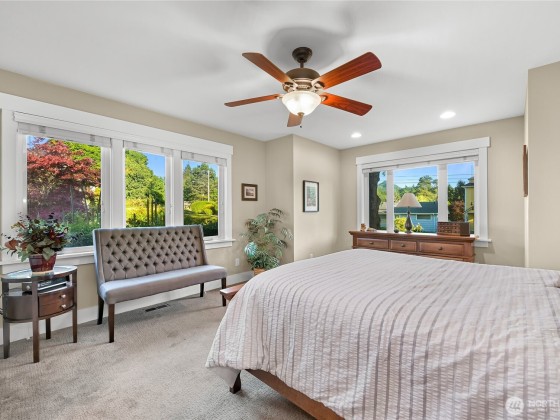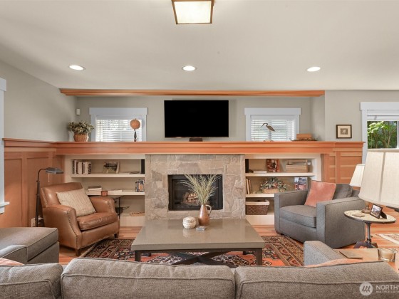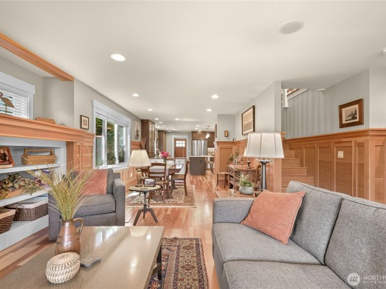 Immaculate 3,800 square foot Fairhaven craftsman home only steps from parks, playgrounds & trails. No details were missed in the 2009 renovation of this 5-bedroom (2 down, 3 up), 4-bath home with primary on the main floor and a secondary en-suite on the upper floor. High-end workmanship featuring fir wainscoting, Chuckanut sandstone fireplace, large chef's kitchen with high-end appliances opening to the dining and living rooms. The upper floor includes a large play/recreation area, 3 bedrooms, 2 baths, music room, office and storage space. This home is highly energy-efficient with solar panels and EV charging in the 2-car garage. The lighted flagstone patio is ideal for outdoor entertaining and the gardens are low-maintenance and irrigated.