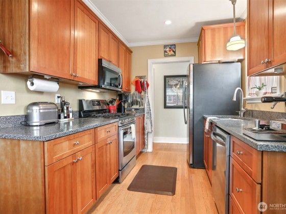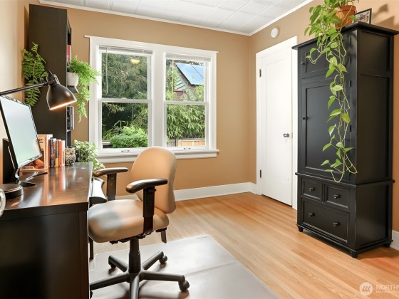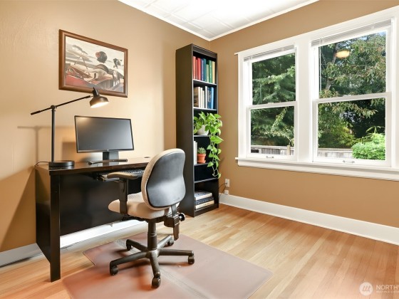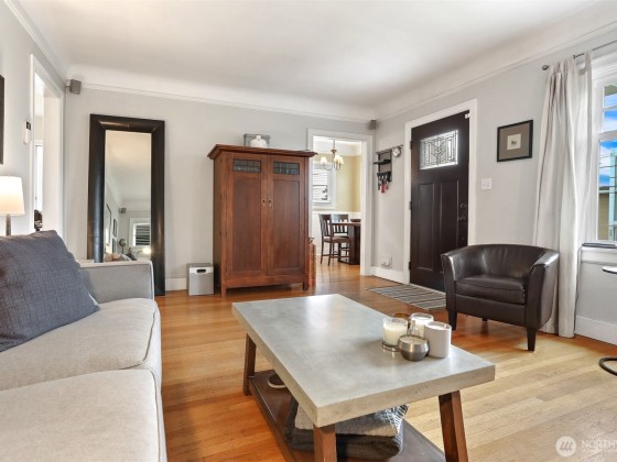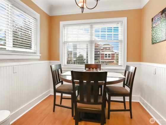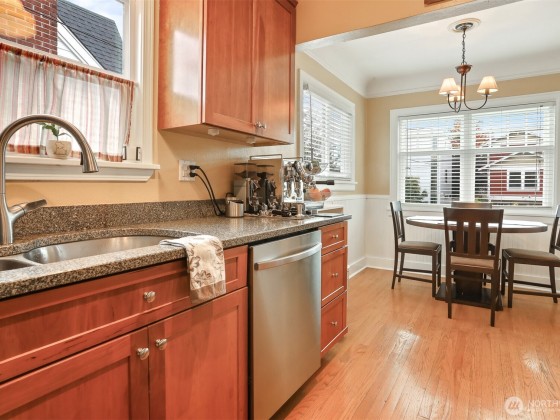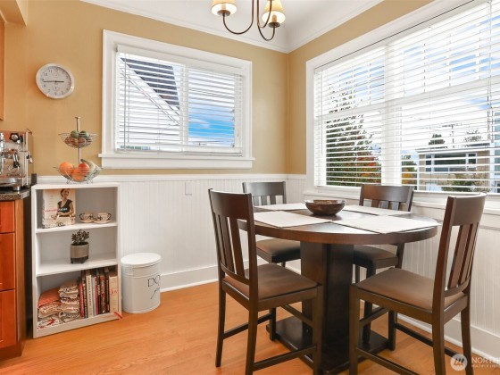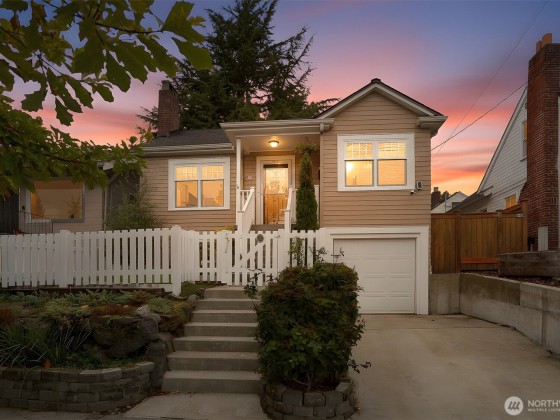 Adorable Green Lake area Bungalow. The perfect "package"! Wonderful location just steps to Green Lake, and several blocks to all the great amenities that Phinney Ridge has to offer. Too many upgrades to list and meticulously maintained. Main floor boasts 2 spacious bedrooms, 1 full bathroom, living room with wood-burning fireplace with built-in shelves on either side, upgraded kitchen and quaint dining area. Upstairs has the 3rd bedroom with extra storage. For you wine lovers, the basement includes your own Tasting Room, with a custom Wine Cellar, plenty of storage, laundry and 1-car attached garage. Outdoor patio off the kitchen, for BBQ and your morning coffee. Just enough (fully-fenced) yard for a pet or two. Be in before the Holidays!