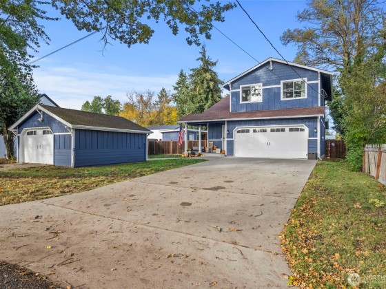 Beautiful 3 Bed, 2.5 Bath Home in Downtown Roy on a 7200 sq ft lot! Enjoy a walkable lifestyle—minutes walk to the park, schools, coffee, and the Roy Rodeo. 10 minute drive to east gate of JBLM & 12 minute drive to Yelm! This turn-key home features an open concept great room, stone countertops, stainless steel appliances, and a cozy wood-burning stove. All 3 beds upstairs, including a primary suite with an ensuite bath and walk-in closet. Garage/Workshop Oasis: Includes a finished 2-car attached garage with epoxy floors PLUS a heated 420sq ft detached shop. The private, fenced backyard boasts a dedicated chicken coop and raised garden beds for organic gardening. NO HOA!