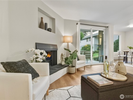 Beautifully updated, move-in ready 2 bed/1 bath condo in highly desirable Green River Estates, right in the heart of Kent! Ground-floor living with a bright, open layout, natural light, and private patio that opens to a serene courtyard. Enjoy the cozy fireplace, new lighting, and a fully remodeled kitchen with brand-new refrigerator and dishwasher. The updated bathroom features a stylish new vanity, tub, and toilet. The home is complemented by fresh paint, new flooring, and new carpet. In-unit washer/dryer, spacious walk-in closets, and assigned parking add everyday convenience. Pets allowed and no rental cap—ideal for investors. Close to major roads, shopping, and more. Modern style, comfort, and convenience all in one turnkey package!