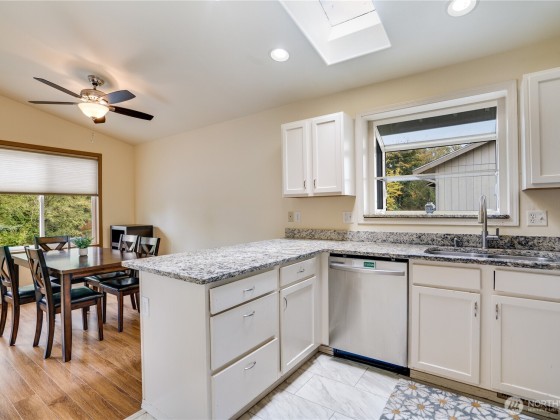 Welcome home to this charming 4-bedroom, 2.75-bath retreat tucked in a quiet cul-de-sac on a spacious corner lot. Thoughtfully updated, it features fresh interior paint, new carpet, durable LVP flooring, and a brand-new roof (2023). The light-filled kitchen shines with granite countertops, stainless steel appliances, and classic tile flooring. Upstairs, the primary suite offers a private ensuite and slider to a cozy deck. The lower level adds flexible living space with a second family room, full bath, and backyard access—perfect for guests or gatherings. With a fully fenced yard, ample parking, conveniently located near shopping, restaurants, with easy access to I-5, this home beautifully blends comfort, functionality, and timeless charm.