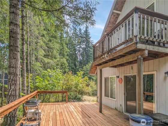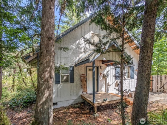 Turnkey Buttercreek cabin with +-130 ft of creekfront and expansive decks could be your own! Nestled on one of TWO included parcels for add'l building potential, this charming 3-bedroom, 2-bath chalet in High Valley features a blend of hardwood and tile floors, and included access to community pools, golf course, trails & clubhouse. Enjoy cozy evenings by the woodstove and an inviting kitchen. This cabin comes fully equipped with all appliances and furnishings, making it a true move-in ready gem. Conveniently located near Mount Rainier National Park, the vibrant mountain hub of Packwood, and the White Pass Ski Area, this property offers the perfect blend of tranquility and adventure. Embrace the mountain lifestyle today!
