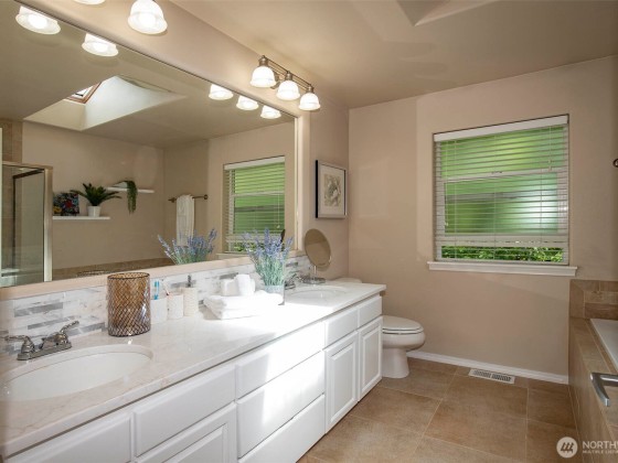 This elegantly remodeled home is ready for you just in time to start the new school year in top rated Northshore Schools! Great floorplan with lots of space for all with 4 bedrooms, 2.5 baths & loft! Custom hardwoods greet you into the grand foyer w/ vaulted ceilings. Light filled Living Room is open to Dining Room. Kitchen has stone counters, SS appliances, gas cooking, eating bar + nook & open to Family Room w/ gas fireplace! Upstairs is the Primary suite w/ fireplace & luxury bath w/ soaking tub, shower & walk-in closet. Open loft separates 3 more bedrooms & bath. Park-like setting backs to greenbelt. 3 car garage, RV/Boat parking. Newer Furnace & A/C. Fantastic location on border of Canyon Park @ I-405 & Filbert w/ easy access to I-5.