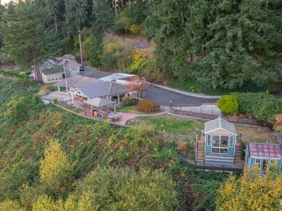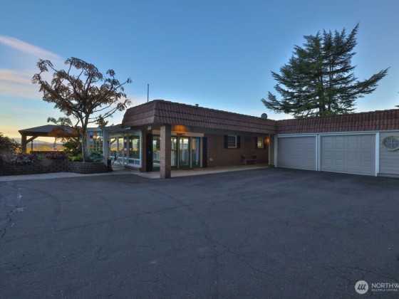Escape to a private, mid-century oasis on a secluded road and enjoy unobstructed, breathtaking Mt. Rainier and city views from the wall of windows in this unique charmer. Inside, find gleaming hardwood floors, an open plan, and a spacious kitchen with a farm sink. The lower level offers a large living area/guest suite with a fireplace. Tons of Storage space and work area. Peace of mind is paramount: This beauty features brand-new electrical and HVAC systems! The ultimate outdoor entertainer's paradise awaits: a glass-railed Trex deck, outdoor living area, greenhouse, and Gardener's dream! RV parking! Lots of character, views, and big ticket updates. True Paradise in the PNW.