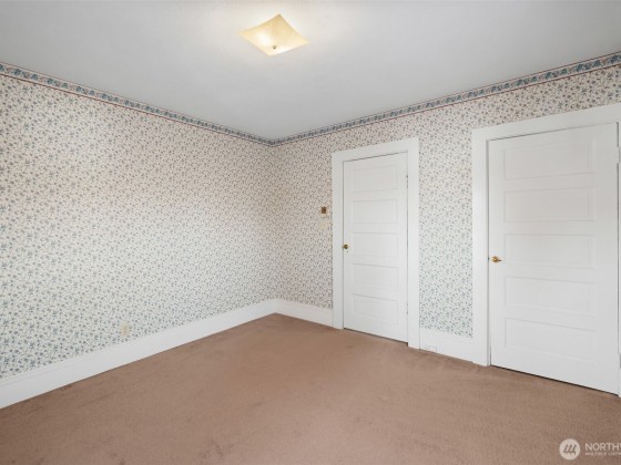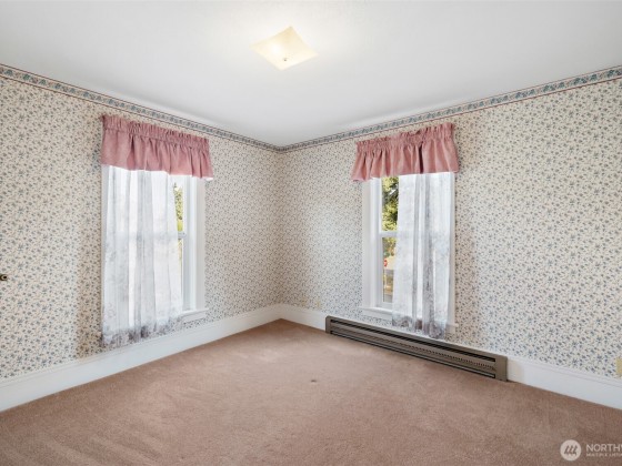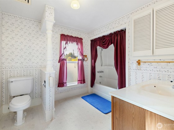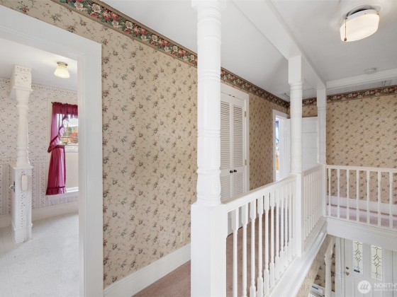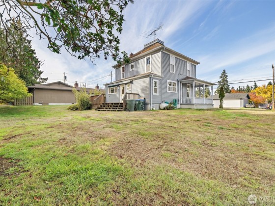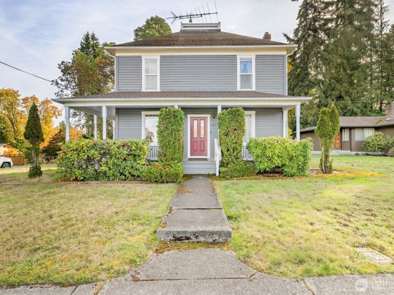 Discover the historic charm of this 1910 colonial on Pine Hill, once a Red Cross station during WWII. This 3-bedroom+den, 1.5-bath home features original hardwood floors that whisper stories of the past. The two-story layout includes tall ceilings and large attic workshop w/ladder leading to the widow's walk hatch—perfect for a soulful workspace and energy. Set on a double corner lot, the property is ground to striking Madrona trees, a garden shed with power, a variety of critters, covered porch, and back deck w/awning for your midnight musings. With built-ins, craftsman trim, pristine wallpaper, spacious walk-in pantry and closets, free standing stove, vinyl windows, and more, this home combines historical intrigue with modern convenience.