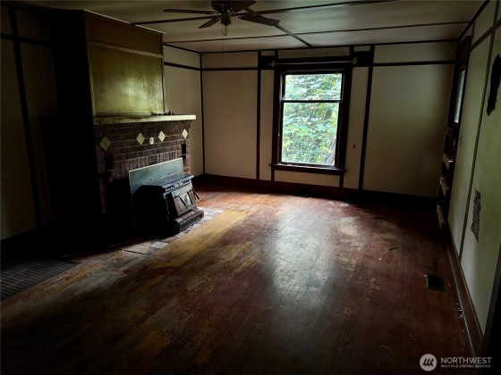 Investors Welcome! Great price on this charming turn of the century home with 2 TAX PARCELS. The interior features unpainted original woodwork, built-in cabinets, millwork and moulding, 3 bedrooms plus a bonus loft, large living room with fireplace, formal dining room and a functional kitchen. The exterior has great parking, a 2-car detached garage, front and back decks and a private backyard. There is also a 680 square foot unfinished basement with its own entrance which may have potential for additional finished living space or possibly an ADU. Bring your vision and schedule a viewing today!