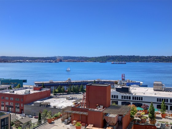 Live in a work of art. Designed by local architects Weinstein A+U and winner of multiple AIA design awards, the steel & concrete Banner Building offers a unique combination of stylish industrial modernity and exclusive luxury. Rise above the city and take in views of Elliot Bay and the waterfront as you enjoy this two-level penthouse condo. This loft-style home features soaring ceilings, natural light, hardwoods, a primary suite retreat, special den/flex room and private view deck to take the sights & sounds of city living. Smart built in storage on both levels. Just steps to a multitude of restaurants, bars and retail shops; convenience is tangible. Secure parking. Whether your primary spot or a pied-a-terre - it's your Seattle home.
