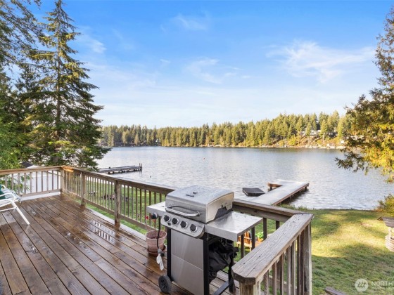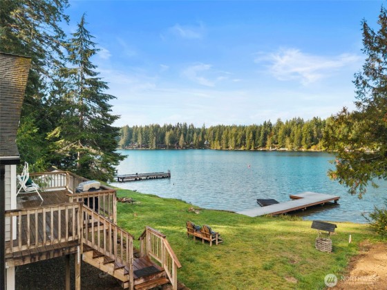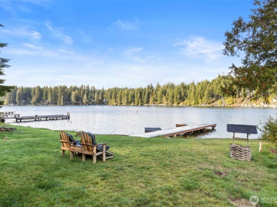 Welcome to lakefront living on beautiful Haven Lake—where every day feels like a getaway! Enjoy water skiing, jet skiing, swimming, and fishing right from your backyard. This special property includes two combined lots totaling 0.63 acres with approximately 90 feet of no-bank frontage and your very own private dock and float. Inside, the upstairs features a spacious bonus room and cozy loft area—perfect for extra guests or creative space. Outside, gather around the firepit, store your gear in the shed and two storage areas, and take in the peaceful setting. Haven Lake is a 69-acre lake known for crystal-clear water and great trout and bass fishing—ideal for a fun retreat or your full-time lakeside home!