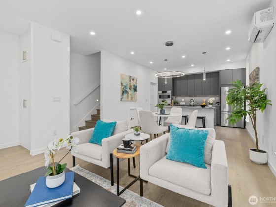Elevated city living at its finest! New construction townhome perfectly situated near upcoming Judkins Park Lightrail Station. Unmatched convenience & connectivity blending modern, minimalist, elegant design. Open-concept main floor w/ seamless flow between living & kitchen featuring quartz countertops, SS-appliances, island seating, & under-cabinet lighting. Private top-floor primary w/ walk-in closet + bath w/ dual vanities & walk-in shower. Expansive rooftop deck w/ sweeping city views + gas line for BBQ, perfect for entertaining. Oversized windows, vaulted ceilings, LVP floors throughout, LED lighting, AC, & option to purchase garage parking. Rare opportunity w/ OZ investment potential in one of Seattle’s fastest-growing neighborhoods!