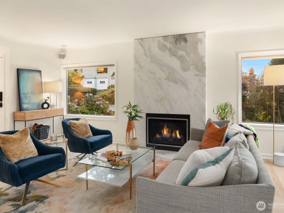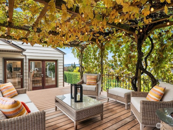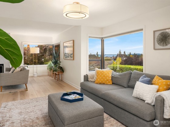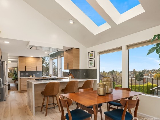 Perched in the hills of Magnolia, this inviting home captures sweeping views of Puget Sound and the Olympic Mountains, offering a front-row seat to glowing sunsets and passing sailboats. The heart of the home, a beautifully remodeled kitchen, blends warmth and sophistication with custom finishes, quartzite counters, and a seamless flow to open living and dining spaces. Step onto the private, vine-covered deck, perfect for gatherings with friends or peaceful evenings under the lights. Flexible spaces provide the ideal setup for working from home while still soaking in the view. A rare blend of character and comfort, this is Magnolia living at its most inspiring.