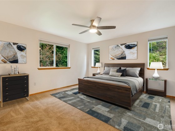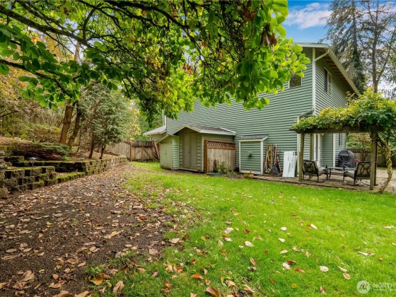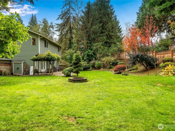 Welcome to this 4 bed, 2.5 bath home with two, separate family rooms, a spacious kitchen with stainless steel appliances and LVP throughout the main level. Enjoy peace of mind with a new roof and skylight (Feb 2025), new water heater (2022), new fence (2023), and new retaining wall (2024). The large primary suite features a walk-in closet and a five-piece bath with a relaxing soaker tub. Huge 4th bedroom could be a bonus room, home theatre or 3rd living space. The huge, private backyard is a true retreat complete with a paver stone patio, wisteria vine, magnolia and flowering cherry trees, garden area, two sheds, a fire pit, and RV parking. Moments to Martha Lake, Mill Creek Town Center, shopping, dining, and quick I5/ 405 access.