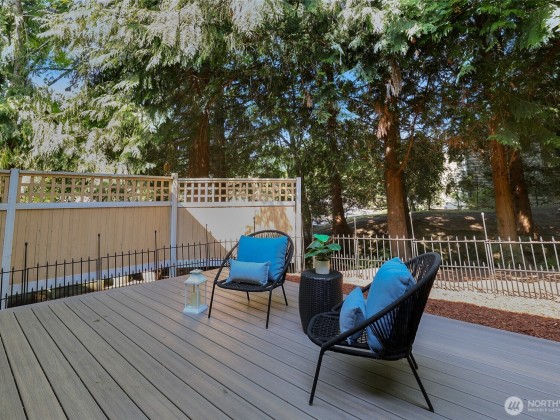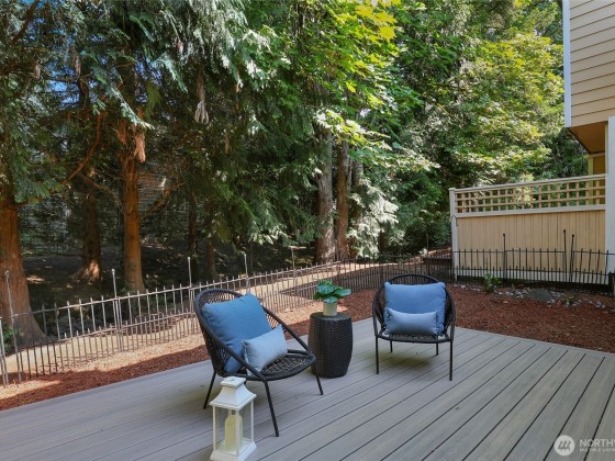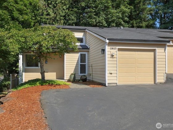 Updated turn-key townhome in a prime Juanita location! This end unit has just one shared wall, overlooks a green space and creek, offering privacy. The lower-level open living area features a fireplace, dining space, updated kitchen with new stainless appliances, and a refreshed 1/2 bath and laundry with Bosch washer/dryer. The dining room opens to a new composite deck and partially fenced yard overlooking the greenbelt. Upstairs offers new carpet, a primary with updated bath, and a second bedroom with bonus space for storage, nursery, or hobbies. Brand-new hot water tank, attached garage with epoxy floor, upper-level storage, driveway, and guest parking. Easy access to I-405, Juanita Beach, downtown Kirkland, shopping, and tech companies.