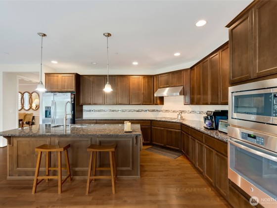 Welcome to this beautiful home on a quiet dead-end street, just a short walk to Meadowdale Neighborhood Park and all assigned schools. Step inside to find a main-floor bedroom and full bath, perfect for guests or a home office. The chef’s kitchen features an oversized island, lots of storage, and flows easily to the formal dining room and open living space. Upstairs, the generous owner’s suite offers a sitting area, five-piece bath, and walk-in closet. Upstairs is also a large bonus room or 6th-bedroom option and utility room. And the walk out basement - with its own with a full kitchen, bedroom, bath, laundry and a private exterior entrance that opens possibilities for multi-generational living or income suite. Welcome Home!