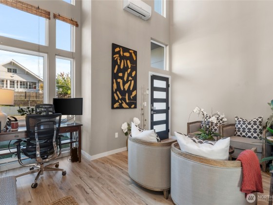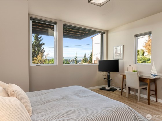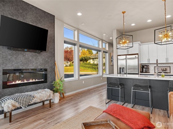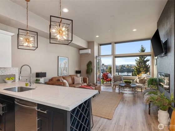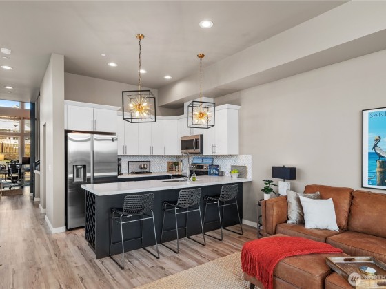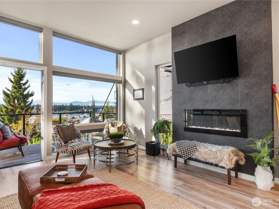 Experience luxury living in Manette Townhomes—a charming waterside community just blocks from dining, entertainment & the Bremerton-Seattle Fast Ferry. This stunning corner unit with only one shared wall showcases Olympic Mountain & water views from large windows. Watch whales & boats glide by from two decks, including a spacious rooftop. Features include soaring ceilings, quartz counters, elegant lighting, a stylish electric fireplace & efficient HVAC. Primary suite offers a walk-in closet & dream shower. Low-maintenance, peaceful lifestyle with a smooth commute to downtown Seattle. Garage SF 399 for a Total ASF of 2543.