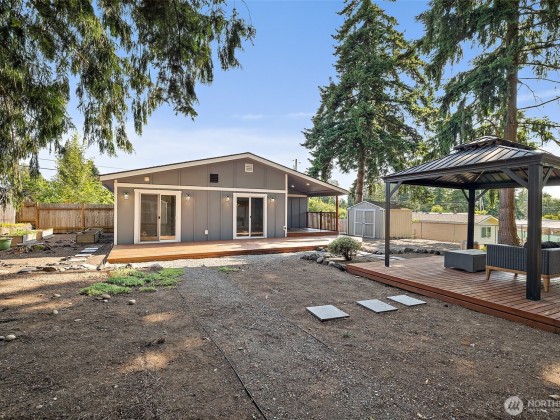 Desirable one-story rambler in the heart of Kent! This beautifully updated home features luxury finishes throughout, including new hardwood flooring, vaulted ceilings, & heated ceramic tile in the bathrooms. The open-concept layout is filled with natural light, and the modern kitchen offers quartz countertops and modern cabinetry. Spacious primary suite with en-suite bath and oversized walk-in closet. Two additional bedrooms with sliding glass doors that open to a large, private, fully fenced yard with fruit trees. Enjoy RV/boat parking, two sheds, garden space, gazebo, and a covered patio. Just 35 mins to Seattle/Bellevue, blocks away from schools, close to Costco, Kent Station, Sounder Train, & SR-18 for easy access to outdoor activities.