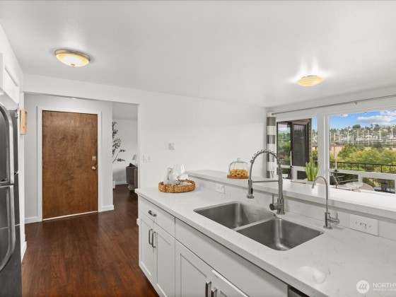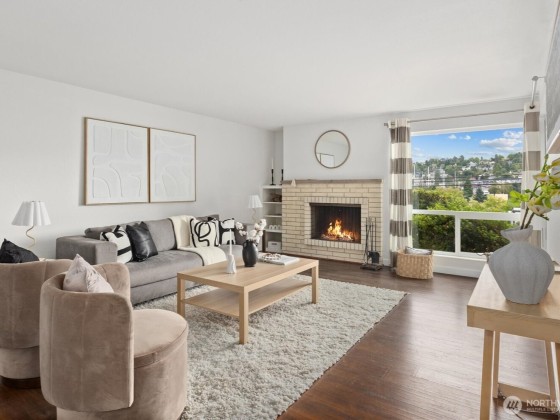 Major price improvement plus additional $5k credit available via preferred lender! Welcome to your Magnolia retreat! This territorial view condo features a spacious kitchen with stainless steel appliances and full pantry, opening to a natural light filled dining room for easy entertaining. The oversized living room with wood-burning fireplace flows seamlessly to a covered patio. With 2 beds, 1.75 baths, in-unit laundry, an expansive primary closet, add storage, and reserved covered parking, this home checks all the boxes! Tucked above the street for added privacy and just blocks from the renovated Elliott Bay Trail. This location is a commuter’s dream with easy access to Amazon and downtown Seattle. Fresh paint throughout = blank canvas!