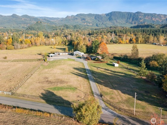Welcome Home to Your Entertainer’s Dream! STUNNING Mt. Rainier views & serene creek frontage from this spectacular custom-built home on 4.28 acres. As you enter, you'll immediately notice attention to detail & craftsmanship that define every inch of this property. 2,500 sf home features 4 bed, 2.5 bath, bonus room, open-concept kitchen, dining area that flows seamlessly into a spacious living room with cozy wood fireplace & home theater. Primary suite includes a walk-in closet and a private en-suite bathroom. Enjoy beautifully mature landscaping, expansive covered patio, 48x48 commercial shop, Greenhouse, RV parking, full fenced & NO HOA! Experience the perfect blend of privacy, beauty & functionality — truly an entertainer’s paradise!