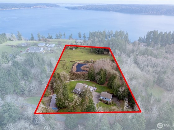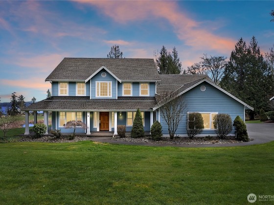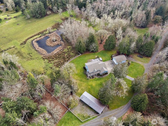Welcome to this stunning 4-bedroom, 3.75-bathroom estate, nestled within a peaceful gated community, set on over 6 meticulously maintained acres. Boasting 3,225 square feet of beautifully living space, this home offers the perfect balance of comfort, functionality, and elegance with views of the Puget Sound. Features include an oversized passthrough SHOP, Swim Spa, Automatic Generator, Horse Barn, Pasture with Pond, New Carpet, Gourmet Kitchen, & much more. Enjoy ultimate privacy and tranquility in this peaceful setting, with mature trees and open skies providing a true country feel. Whether you're seeking a functional equestrian setup, space to grow, or simply a beautiful home in a serene setting, this rare property delivers it all.