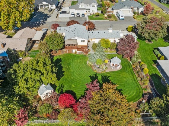 ONE OWNER 5-bed, 3-bath West Pasco home on 0.43 acres. The refreshed kitchen offers granite counters, GE stainless appliances, and there are solid oak floors throughout the upstairs. Fresh interior paint, multiple light tubes bring in tons of light, formal dining, and both gas and wood fireplaces add comfort. Living and family rooms make flexible space. Lush backyard with water feature, gazebo ,covered Trex deck, and expansive patios and courtyards designed for receptions, celebrations, and relaxed evenings. Three-car garage plus RV parking. Newer roof. Enclosed soffits with Christmas light circuits. Newer hot water heater and many thoughtful updates add peace of mind. This home is super clean, meticulously maintained and move-in ready