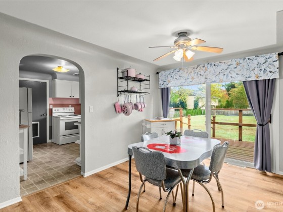 Pride of ownership shines in this immaculate one-story rambler on a spacious, sunny & level 0.3 acre lot in the heart of Lacey. Enjoy timeless charm w/ coved ceilings, arched doorways, cozy brick fireplace & cedar-lined closets. The retro kitchen features ample counter space & newer appliances, opening to a generous, light-filled dining room w/ slider to the large, fully fenced backyard – complete w/ a garden shed & new greenhouse. Recent upgrades include new central A/C & furnace, LVP flooring throughout, interior paint, roof, & updated vinyl windows. With convenient access to shopping, schools, & the highway, plus RV parking and an oversized garage – yet tucked on a quiet street – this home blends classic character with modern comfort.