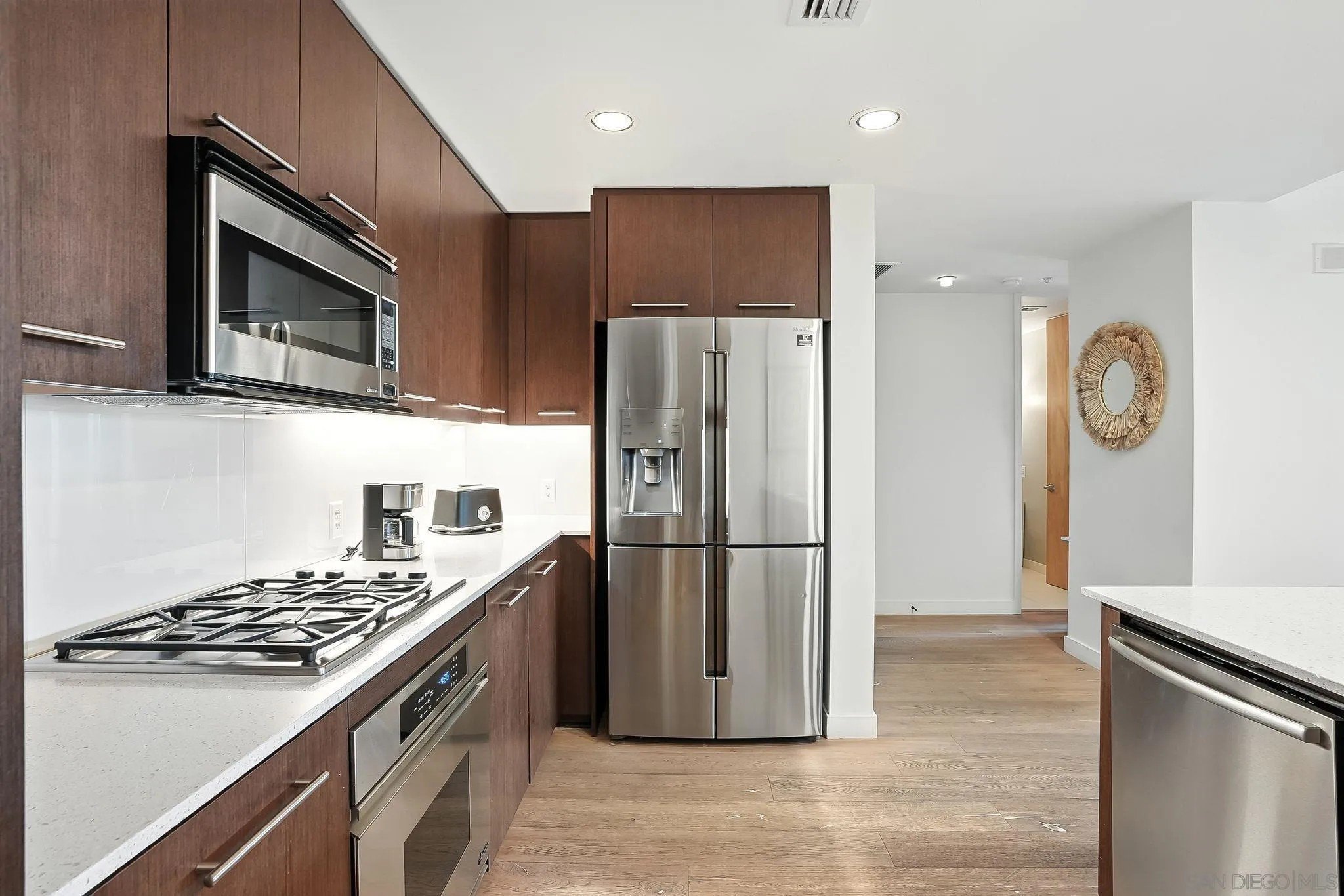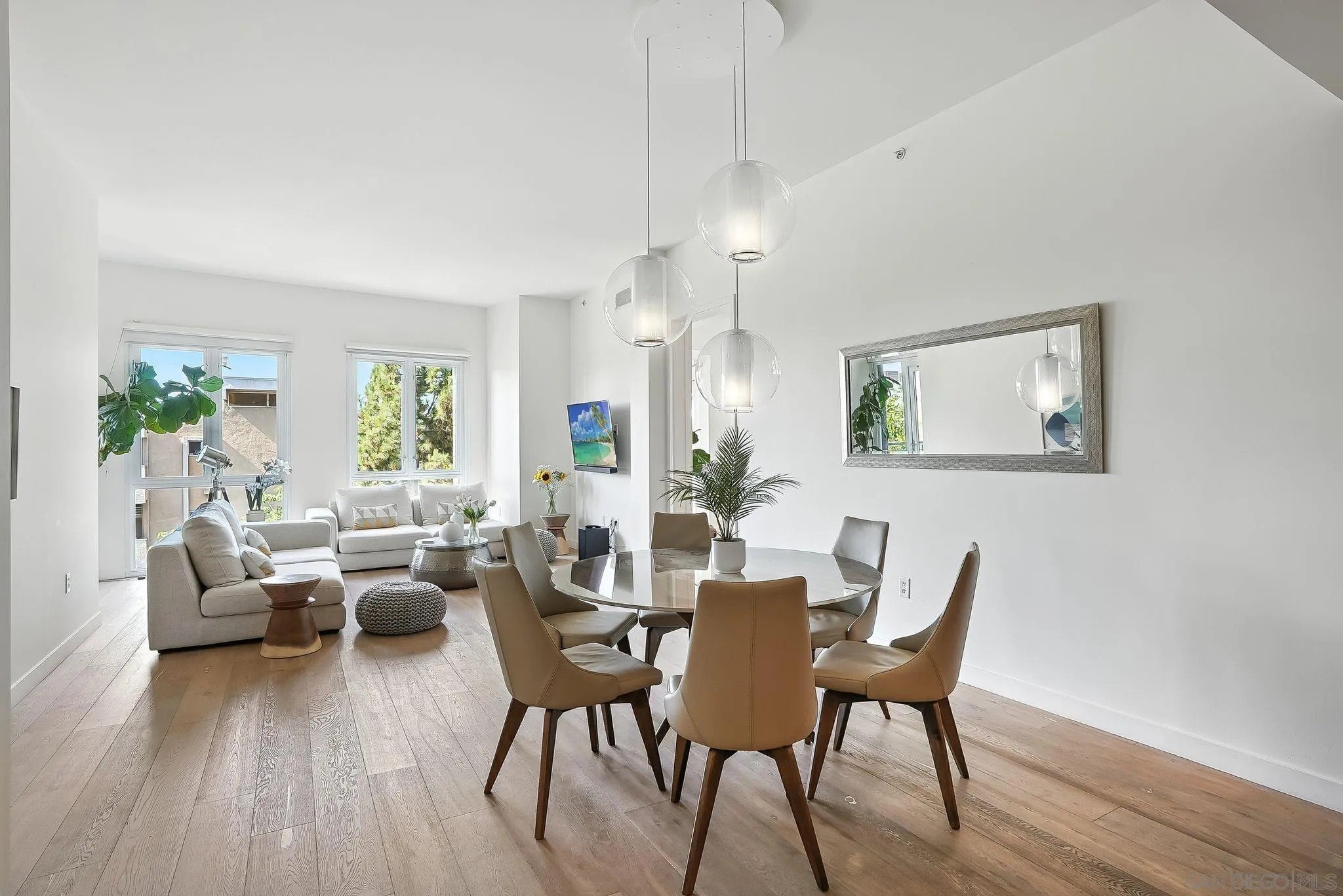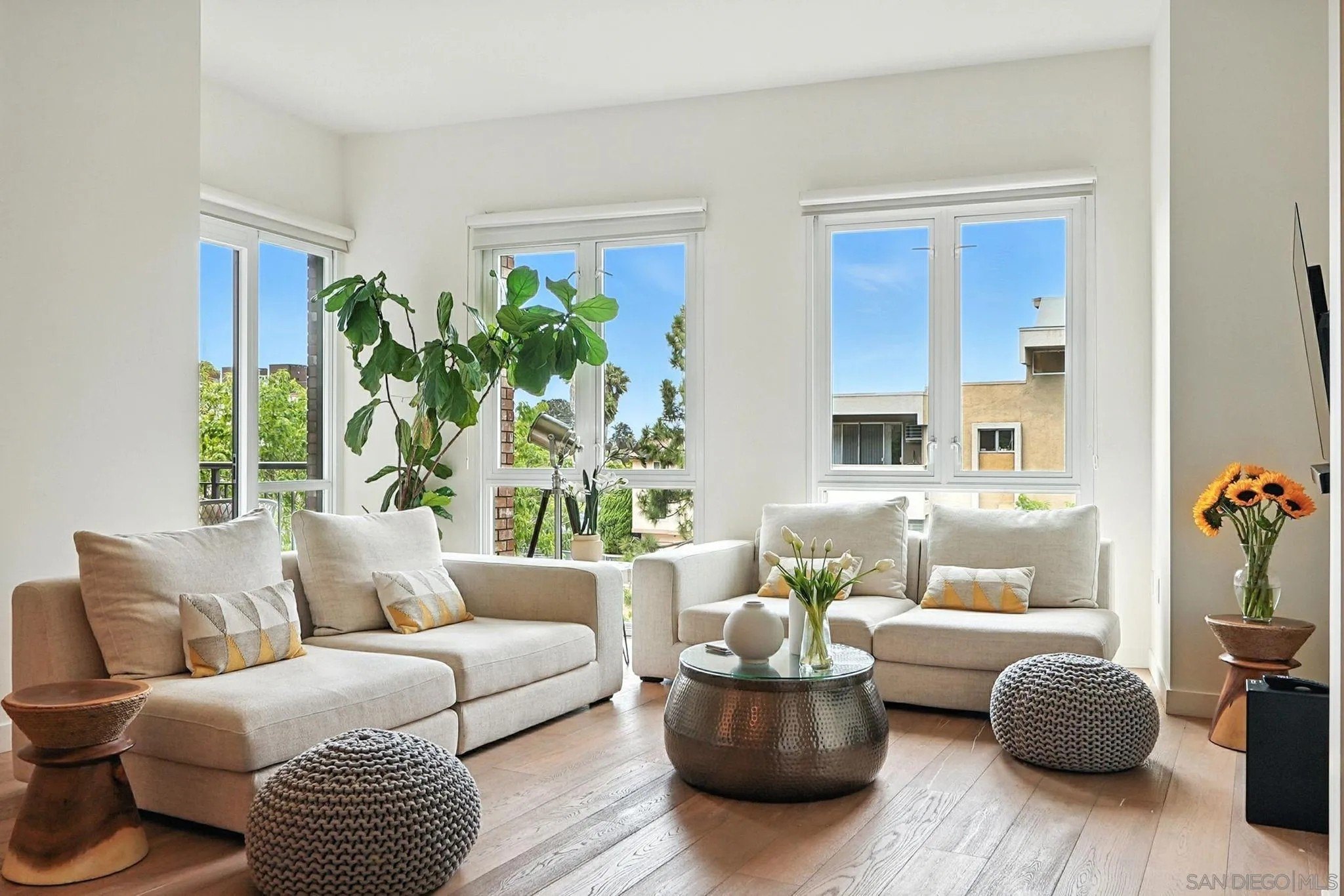 Step into elevated urban living with this stunning 2 bed, 2 bath condo in the prestigious 1Mission community-where timeless sophistication meets everyday comfort! The open-concept floor plan feels airy and expansive with soaring ceilings and sleek neutral-toned plank flooring throughout. At the heart of the home, the chef's kitchen shines with a generous island for bar seating, modern cabinetry, and luxe finishes; perfect for both casual mornings and lively evenings of entertaining. Smart design meets convenience with a laundry room that doubles as a walk-in pantry, giving you functionality without sacrificing style. Unwind on not one, but two private balconies, enjoy peaceful moments from the living room or retreat to the spacious primary suite, where you'll find a spa-inspired bathroom with dual vanities, walk-in closet, and tranquil design details. And the best part? Step outside your door and you're in the heart of Mission Hills, surrounded by award-winning restaurants, boutique shops, and charming cafes. Opportunities like this rarely come up in one of San Diego's most coveted addresses. Don't just find a home - find your lifestyle at 1Mission.