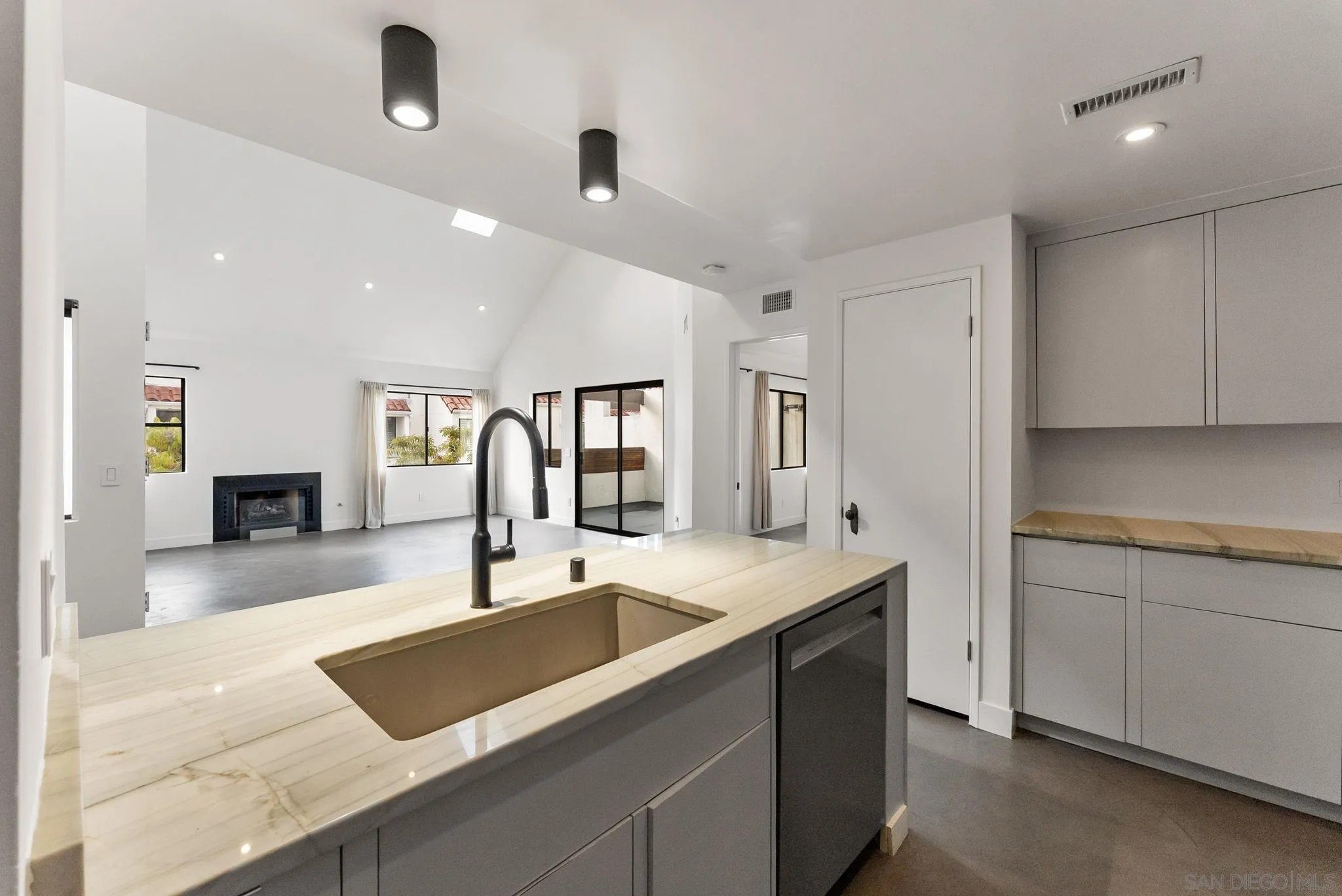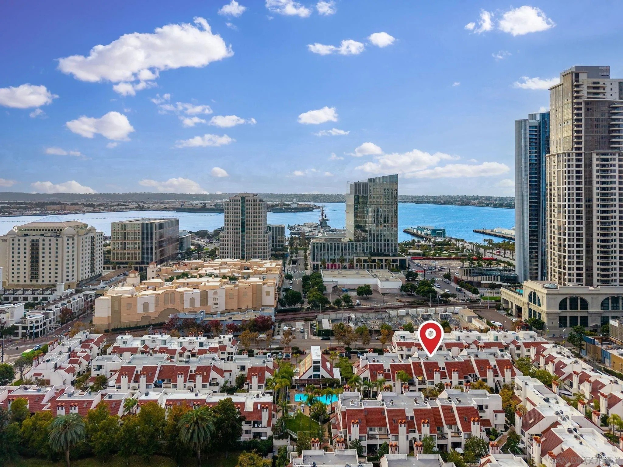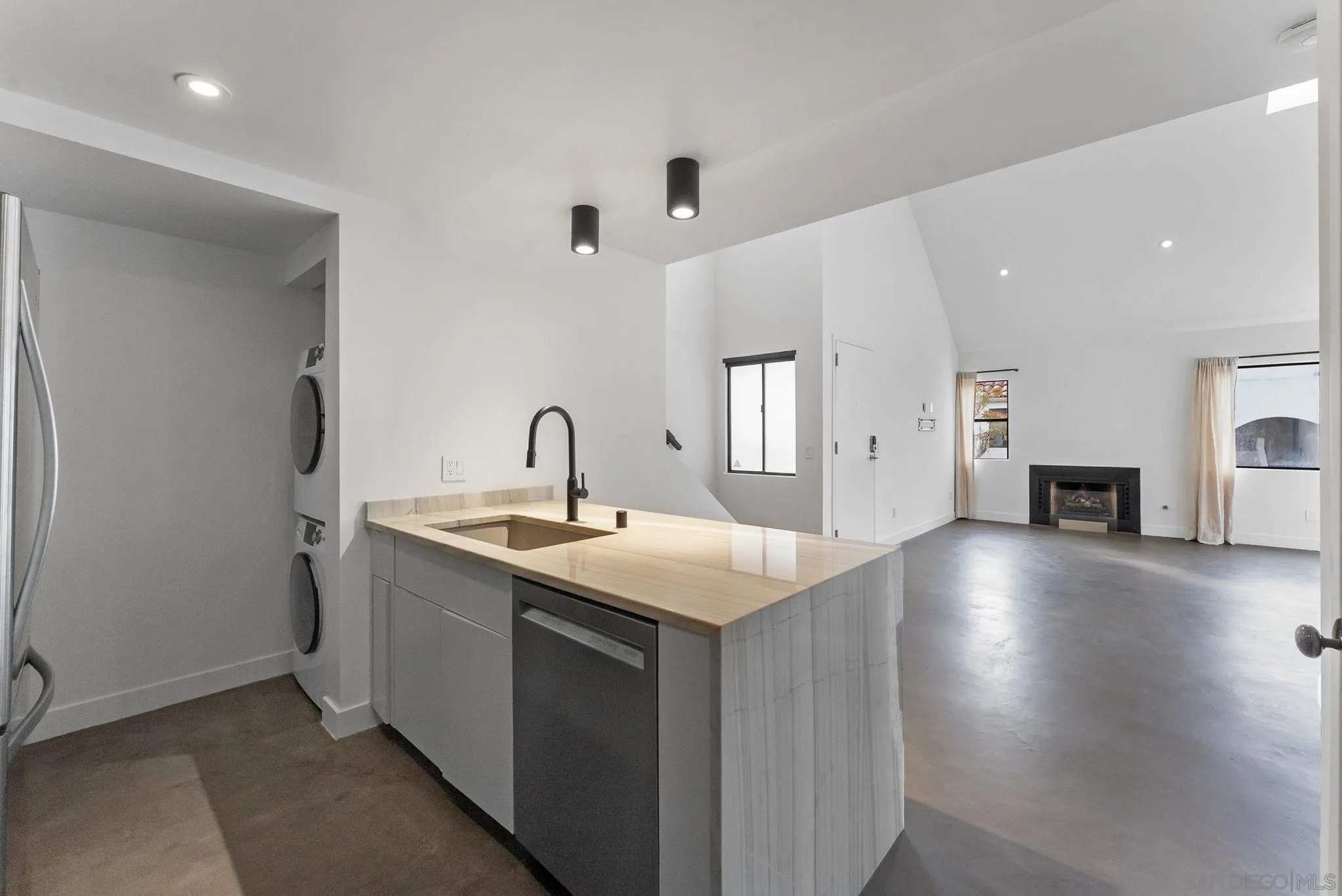 Experience elevated urban living in this beautiful top-floor modern loft-style condo at Park Row, perfectly designed for those who appreciate contemporary architecture, clean lines, and effortless style. This spacious 2-bedroom residence features dramatic ceiling heights, polished concrete floors, and an open-concept layout that blends form and function. The sleek kitchen is a focal point, showcasing modern cabinetry, premium appliances, and an ideal flow into the living and dining areas. Large windows fill the space with natural light, leading you out to a west-facing balcony where you can unwind each evening with panoramic sunset views and the glow of the downtown skyline. The primary bedroom is conveniently located on the main floor, offering a peaceful retreat with a stunning ensuite bathroom finished in contemporary, spa-inspired materials. Upstairs, the open loft provides a versatile second bedroom, office, or creative space-ideal for guests or flexible living. Additional features include one secure garage parking space and access to an impressive suite of amenities, including a resort-style pool, and a stylish clubhouse perfect for gatherings or a change of scenery while working from home. Situated in the heart of downtown, you're truly close to everything-waterfront park, top-rated dining, cafes, boutiques, and the buzzing lifestyle of Little Italy and the Marina District. The San Diego Bay is only a couple minutes' walk away, providing an unbeatable connection to the outdoors. Modern design, premier amenities, and an unbeatable location.