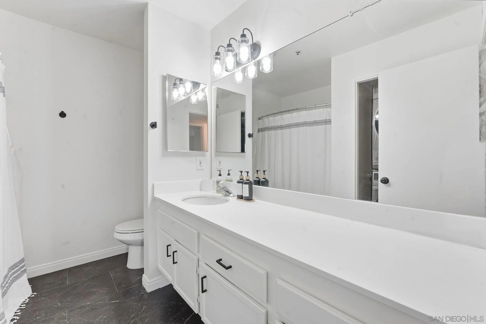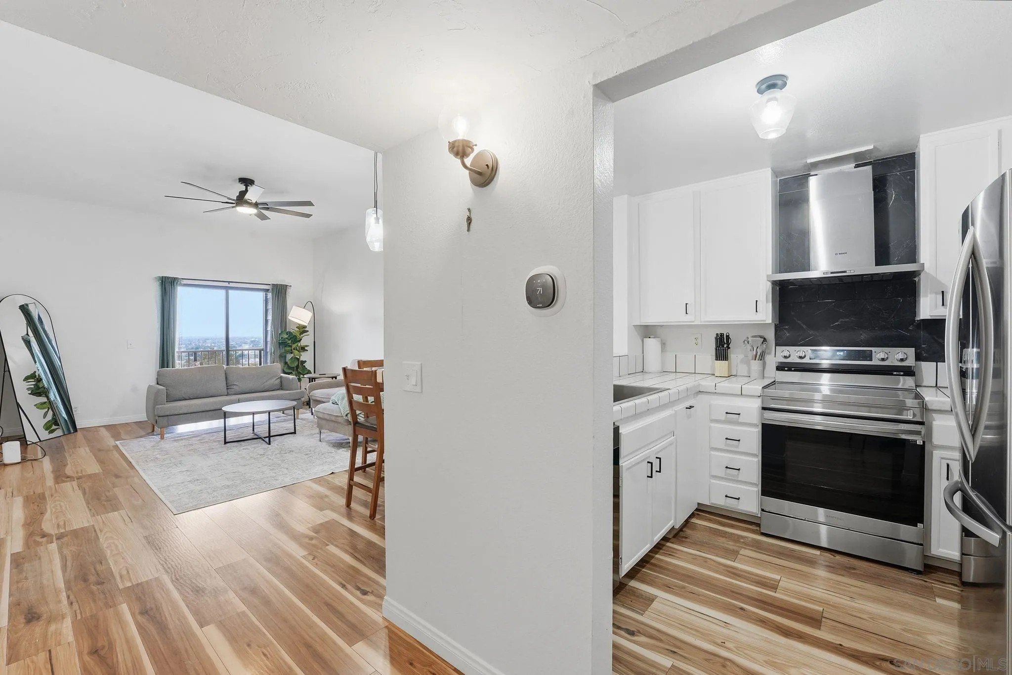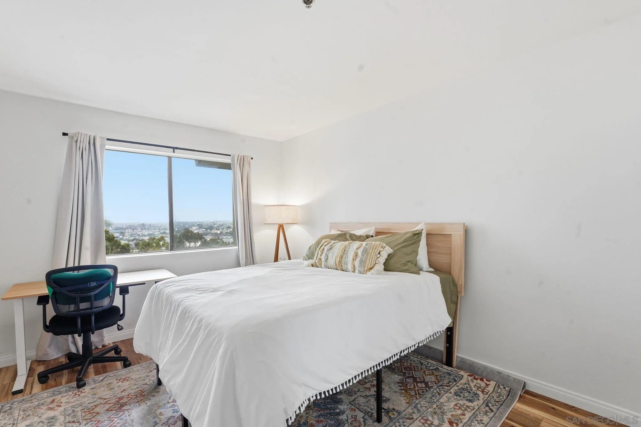 Enjoy the world famous San Diego sunsets right from home! Discover the perfect blend of convenience and comfort in this updated top-floor, 2-bedroom, 2-bath condo just minutes from SDSU. Only a few rare units get to enjoy breathtaking panoramic views from the living room and private balcony. Both bedrooms offer generous space, with the primary suite boasting an en-suite bathroom for added privacy. Rejoice in vaulted ceilings and only one shared wall in the unit with no bedroom neighbors. Located in a well-maintained, secure complex, you'll have the convenience of gated garage parking and easy access to dining, and public transportation.