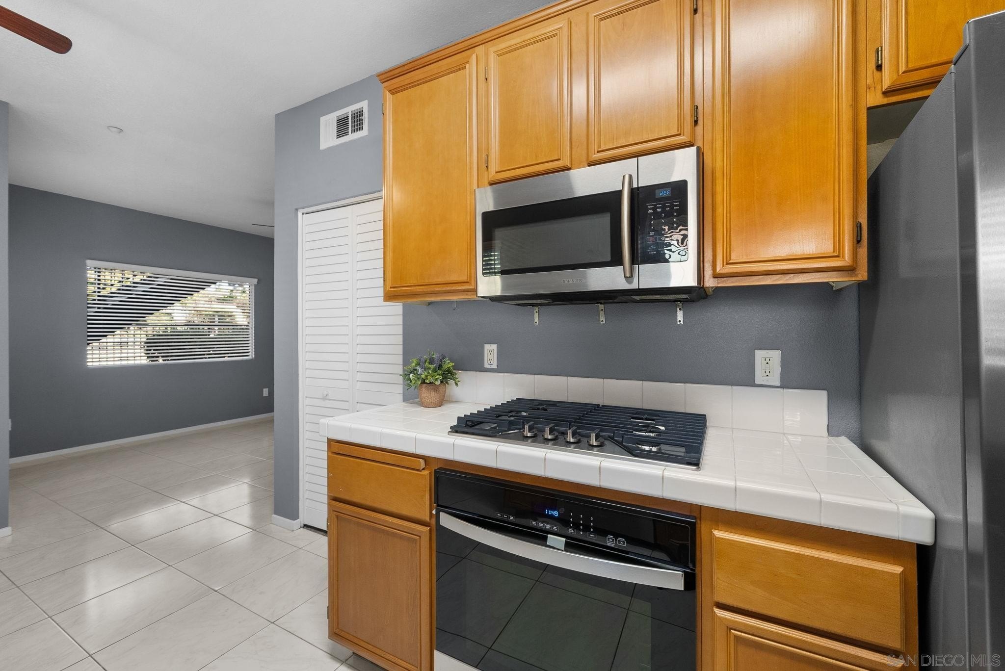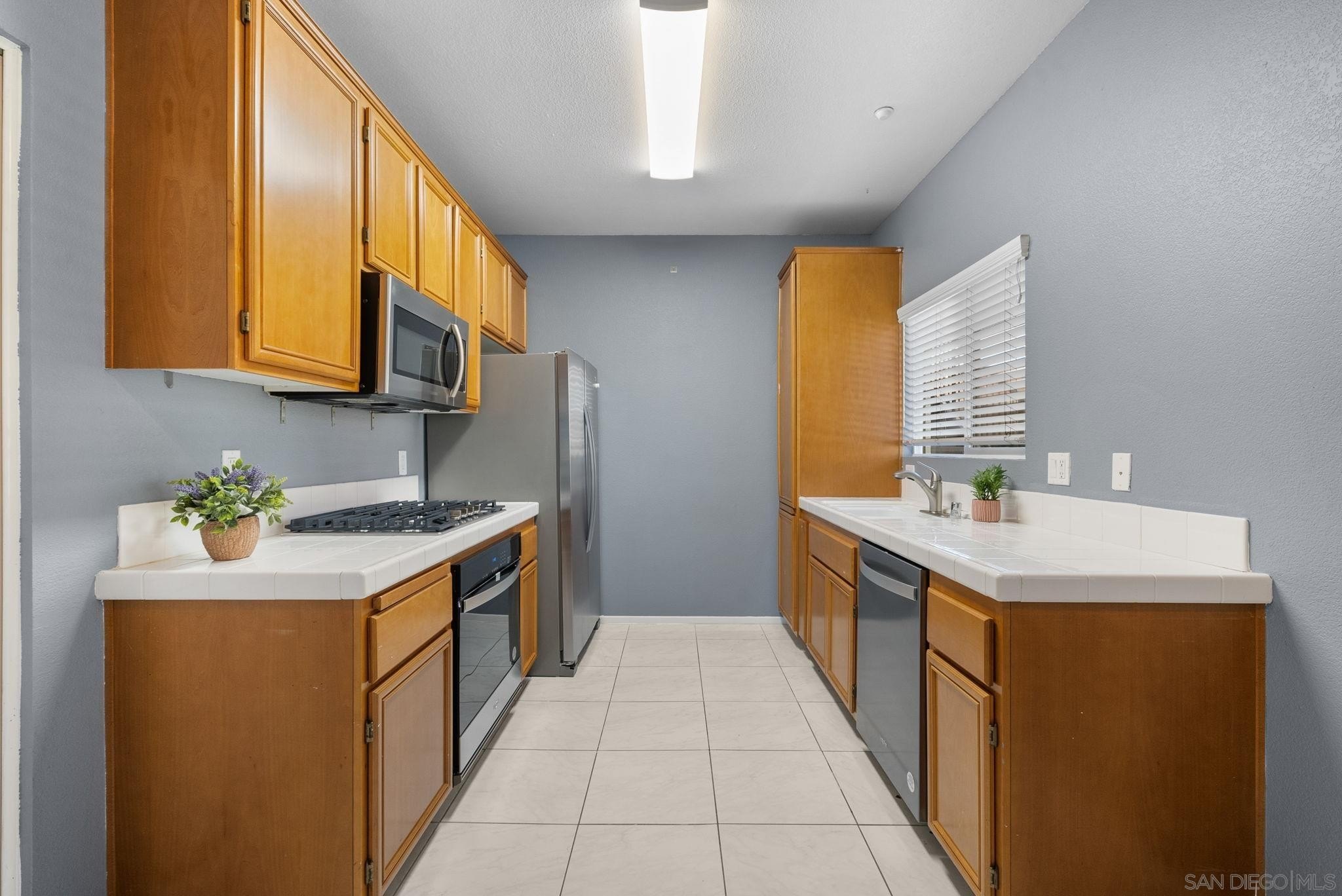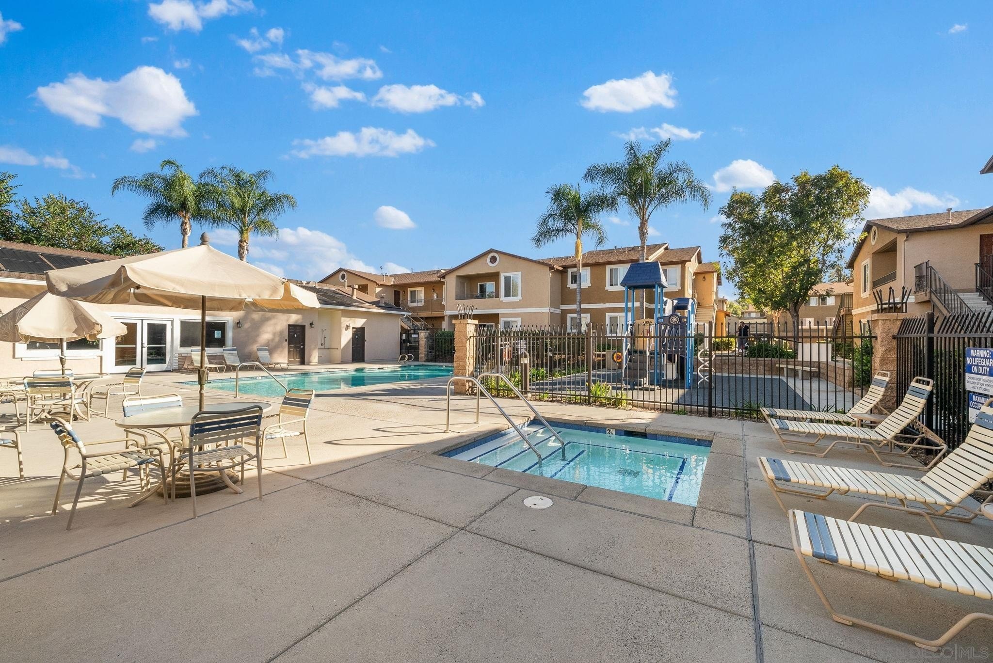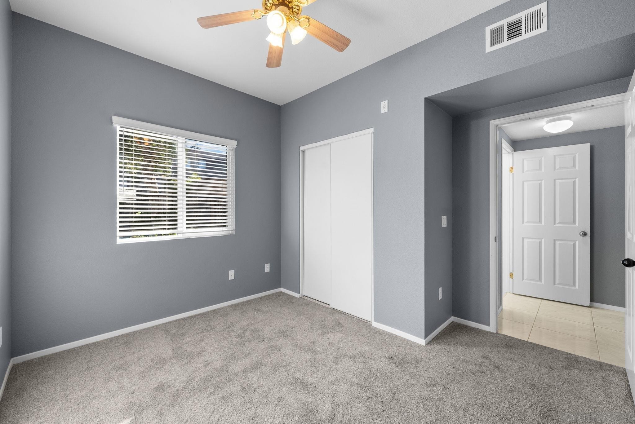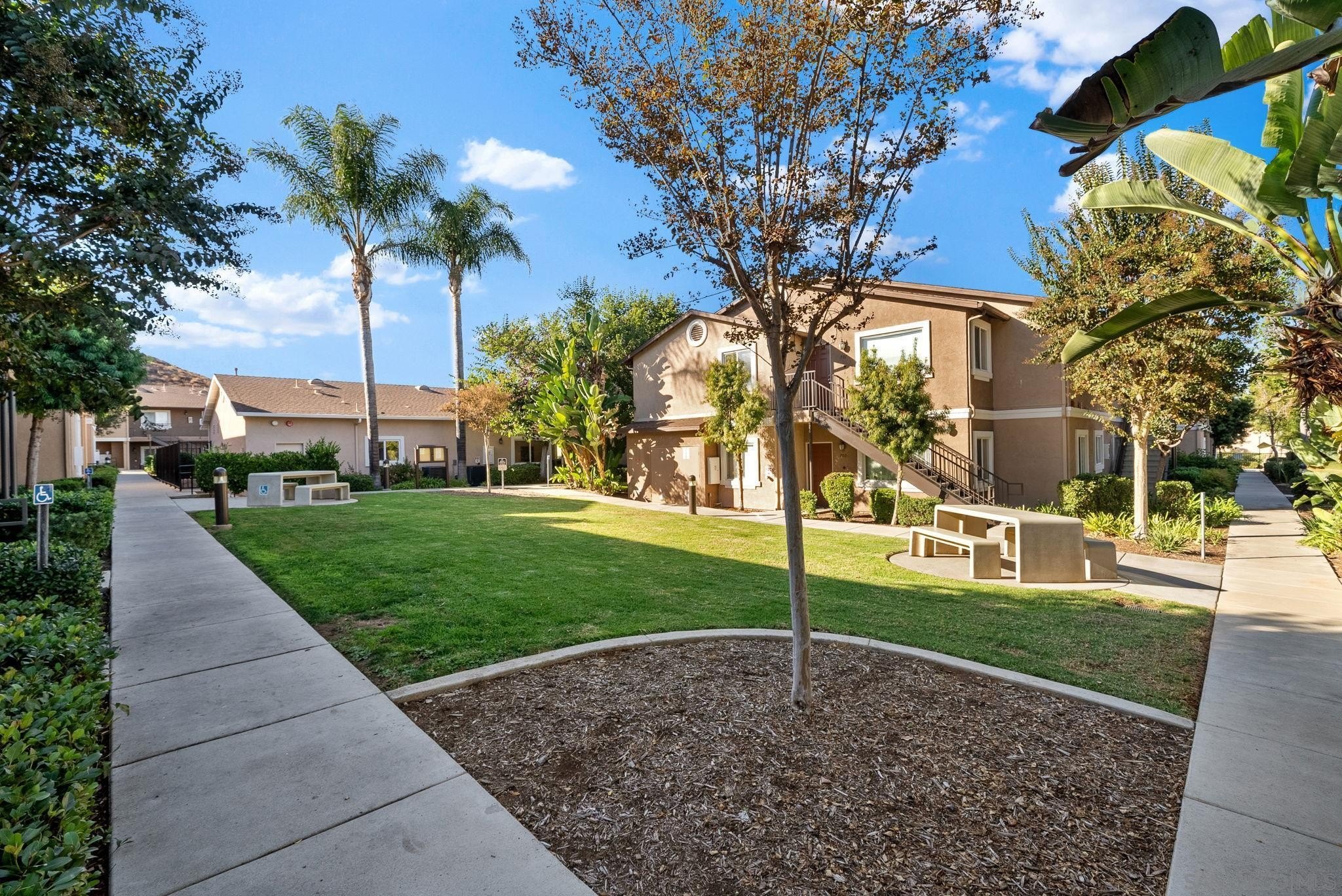 Move-in ready, 3-bedroom, 2-bathroom condo in a gated community! Welcome to this well maintained, turnkey condo in a highly sought-after gated community. This spacious single-story unit boasts 3 bedrooms, 2 full bathrooms, and a bright, open layout that offers both comfort and style. With high ceilings and an abundance of natural light pouring in through the multiple windows, this home feels airy and expansive. The tile flooring throughout is both stylish and easy to maintain, adding to the overall appeal of the home. The kitchen is perfect for cooking and entertaining with stainless steel appliances, and a seamless flow into the dining and living areas. Whether you're relaxing in the spacious living room or enjoying a peaceful moment in one of the cozy bedrooms, you'll appreciate the tranquil atmosphere of this well-designed home. Other features include 1st floor entry- no stairs, in-unit laundry, central heat and AC, private patio space, and 2 assigned parking spaces just steps from the front door. Enjoy the convenience of living in a vibrant gated community that offers a variety of amenities. Take a dip in the community pool, unwind in the spa, or have a play at the playground – all just steps from your front door. The clubhouse is a perfect place for hosting events or meeting neighbors. Convenient freeway access and close proximity to shopping, dining, and all of the local conveniences this home has to offer!