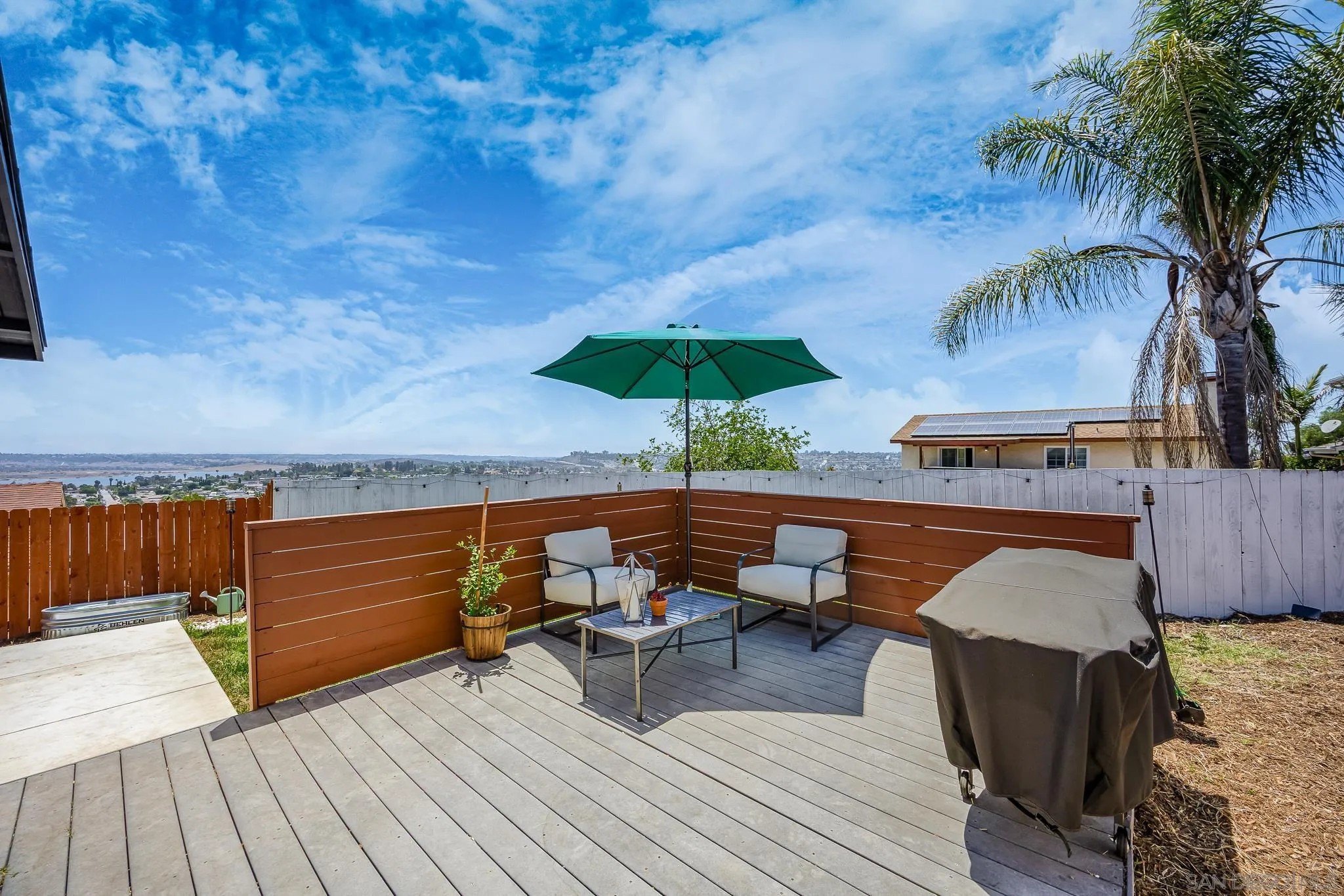 Welcome to your dream retreat! Come home to this beautifully remodeled haven perched atop the iconic Dictionary Hill, where stunning lake and mountain views stretch for miles. This charming 3-bedroom, 2-bath home has been thoughtfully updated from top to bottom with a warm blend of modern elegance and cozy comfort. The airy open floor plan is filled with natural light, complemented by wide plank vinyl flooring and gleaming quartz finishes throughout. Whip up favorite meals in the inviting gourmet kitchen, featuring soft-close cabinetry, sleek quartz countertops, and brand-new appliances. Start your mornings sipping coffee in the peaceful front courtyard overlooking the serene reservoir and surrounding peaks. Then wind down your day with breathtaking sunsets on your spacious backyard deck - a perfect spot for relaxing or entertaining. The bathrooms are fresh and luxurious, showcasing crisp quartz surfaces and contemporary fixtures. New dual-pane windows ensure comfort year-round, and every detail has been carefully considered so you can move in and feel right at home. This turnkey treasure is waiting for someone special-maybe you! Come see it in person: head east on Jamacha (which becomes Apple), then turn left on Maria Avenue. Let's make this lakeview gem your next chapter.