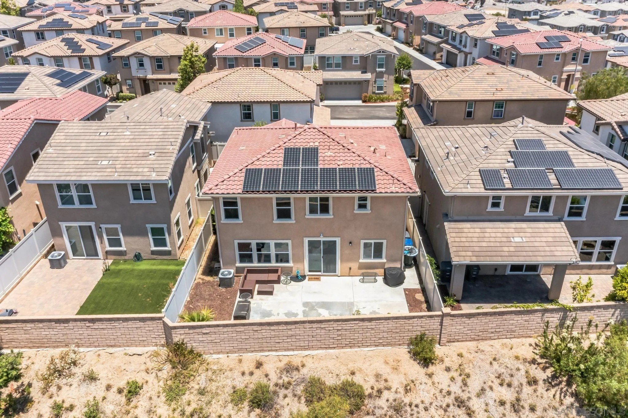 Highly Upgraded! Big View! PAID OFF Solar! No Mello Roos Fee! Low Maintenance! Welcome to your new home in the heart of a vibrant neighborhood of Ridgeline! This spacious house boasts 4 bedrooms, 2.5 baths and 2 car garage perfect for accommodating a growing family or those who love to entertain. As you step inside, you'll be greeted by an inviting atmosphere with modern amenities and a seamless layout. Home is equipped with solar panels, stainless appliances and just about everything within are newer. The open concept floorplan offer a family room, dining area, highly upgraded kitchen with stainless steel appliances, dark brown shaker cabinets complimented with white quartz countertop, large center island, pantry and a powder room. Beautiful neutral tone tile flooring on the first level and laminated flooring on the second. The second level house the primary bedroom, bathroom with walk-in closet and a view of the hillside, 3 additional generous size bedrooms, a full bathroom and a laundry room. Low maintenance landscaping and a great size yard is perfect for outdoor living. Come explore this beautiful community and make this home yours. Welcome Home!