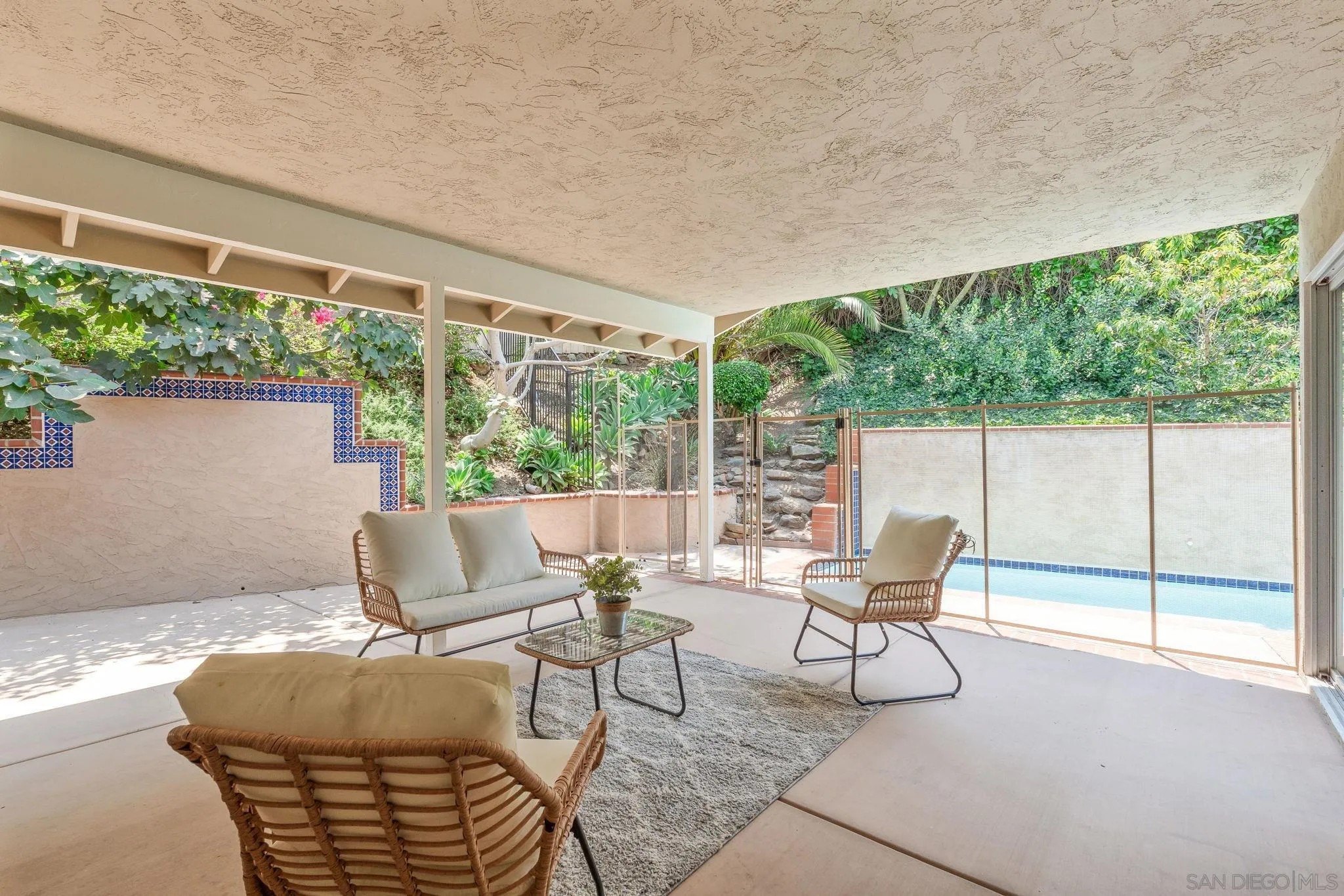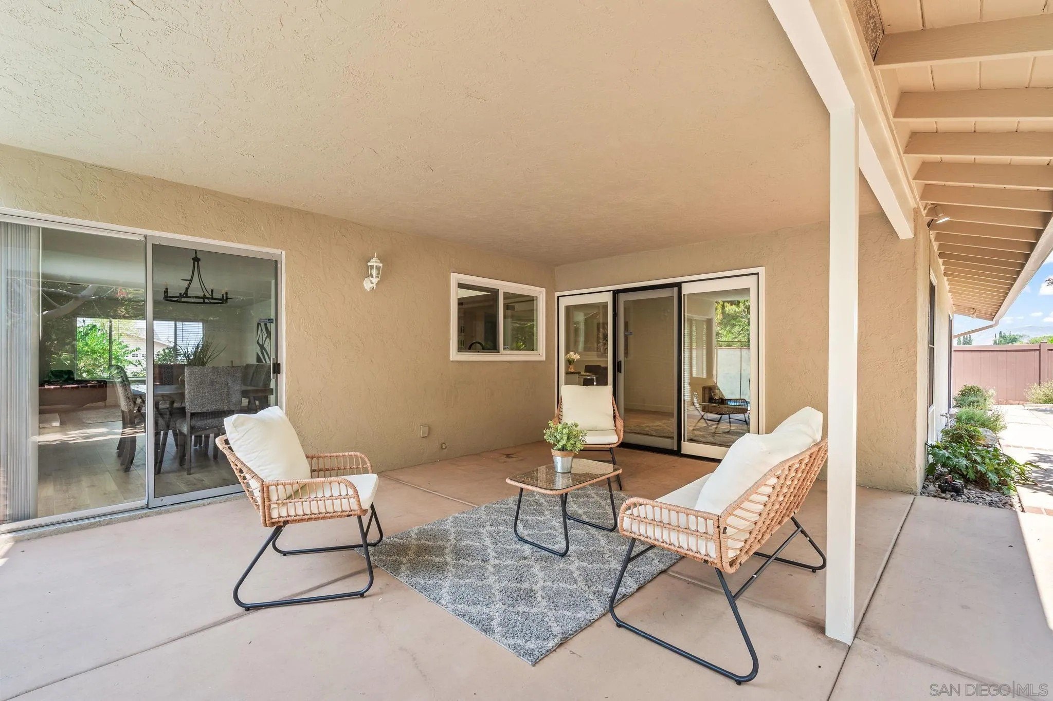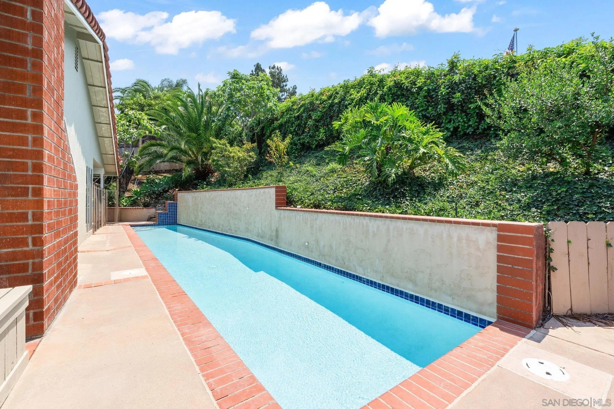Wow ~ SINGLE LEVEL, ranch style home, tucked away on one of upper Del Cerro's finest cul-de-sacs! Private backyard w 3.5 ft deep heated lap swimming pool and easy-care lush landscaping featuring mature palm trees. Large, covered patio/loggia serves as Outdoor Living Space w dedicated bar-b-q area ~ perfect for outdoor entertaining! Beautiful kitchen w granite countertops, large peninsula island, KitchenAid double oven, Bosch dishwasher, plenty of pantry space! Entire home has fresh paint inside/out in light, bright neutral palette to complement your modern or traditional style! Enjoy an interior Laundry Room connected to a 2-car garage complete w workbench! 4th BDR easily used as Den or Office!
