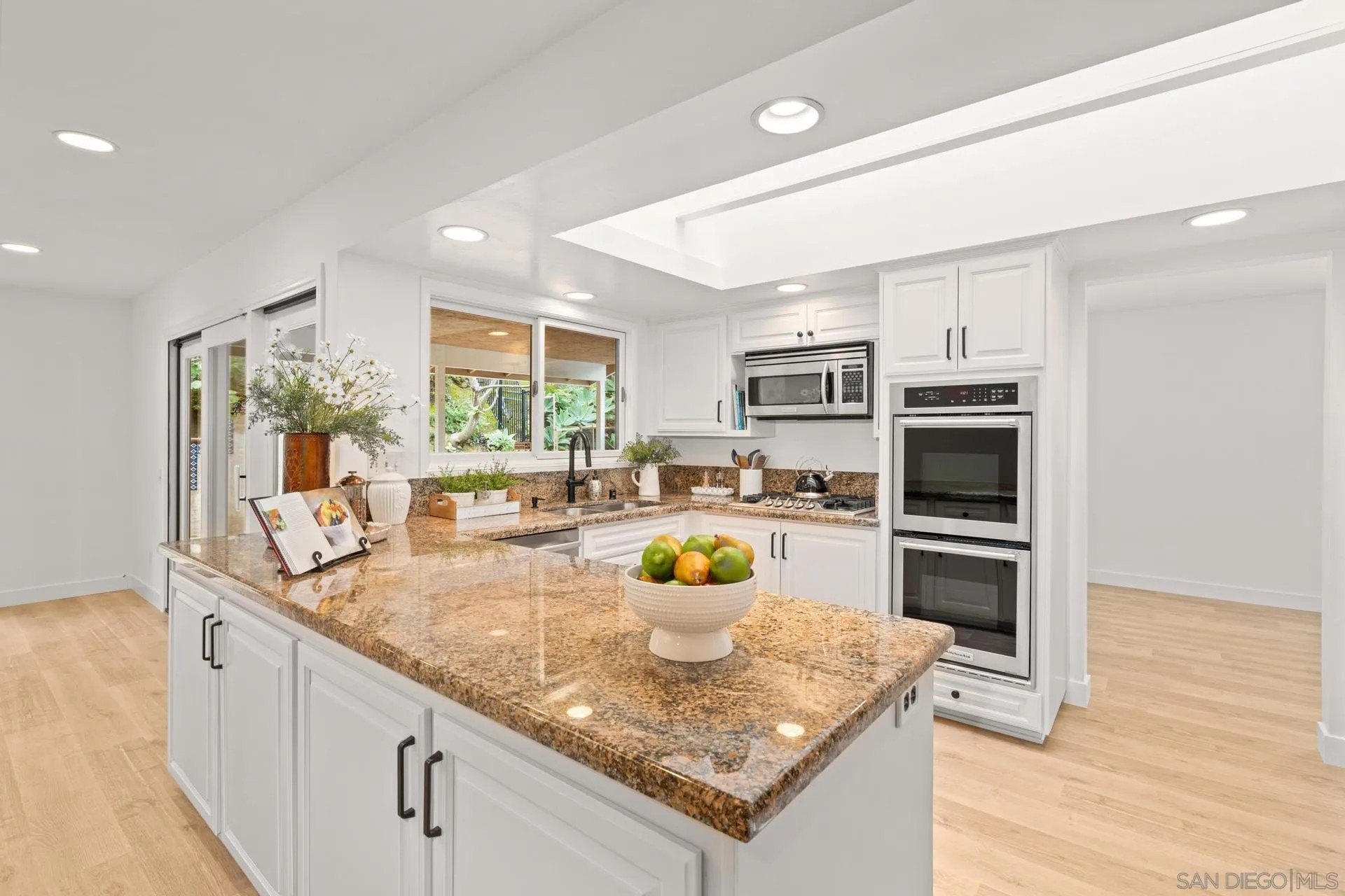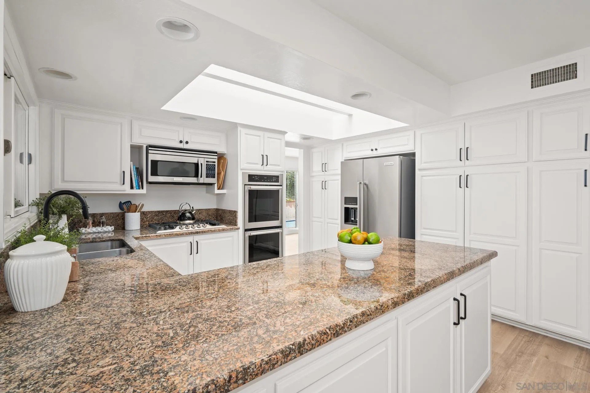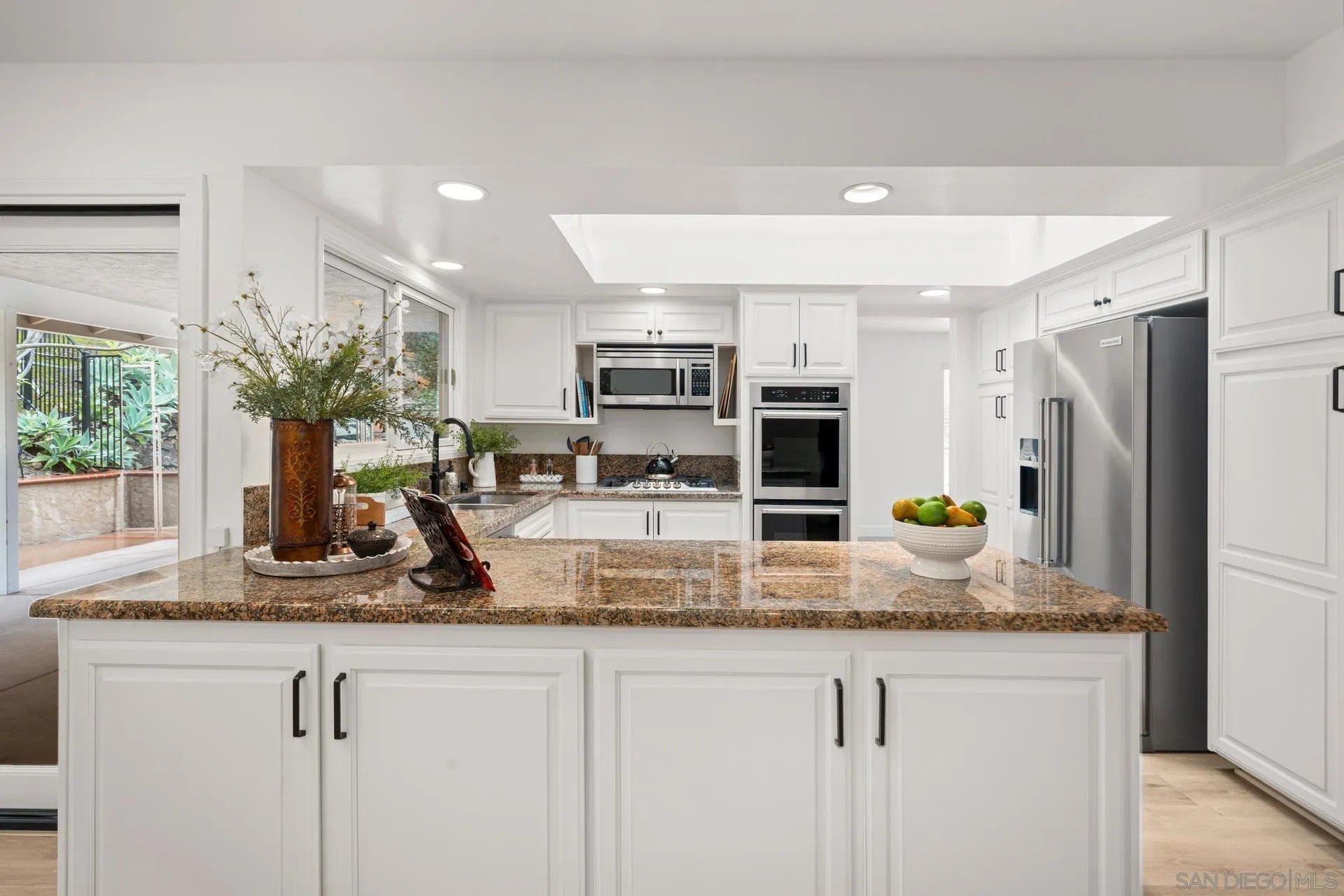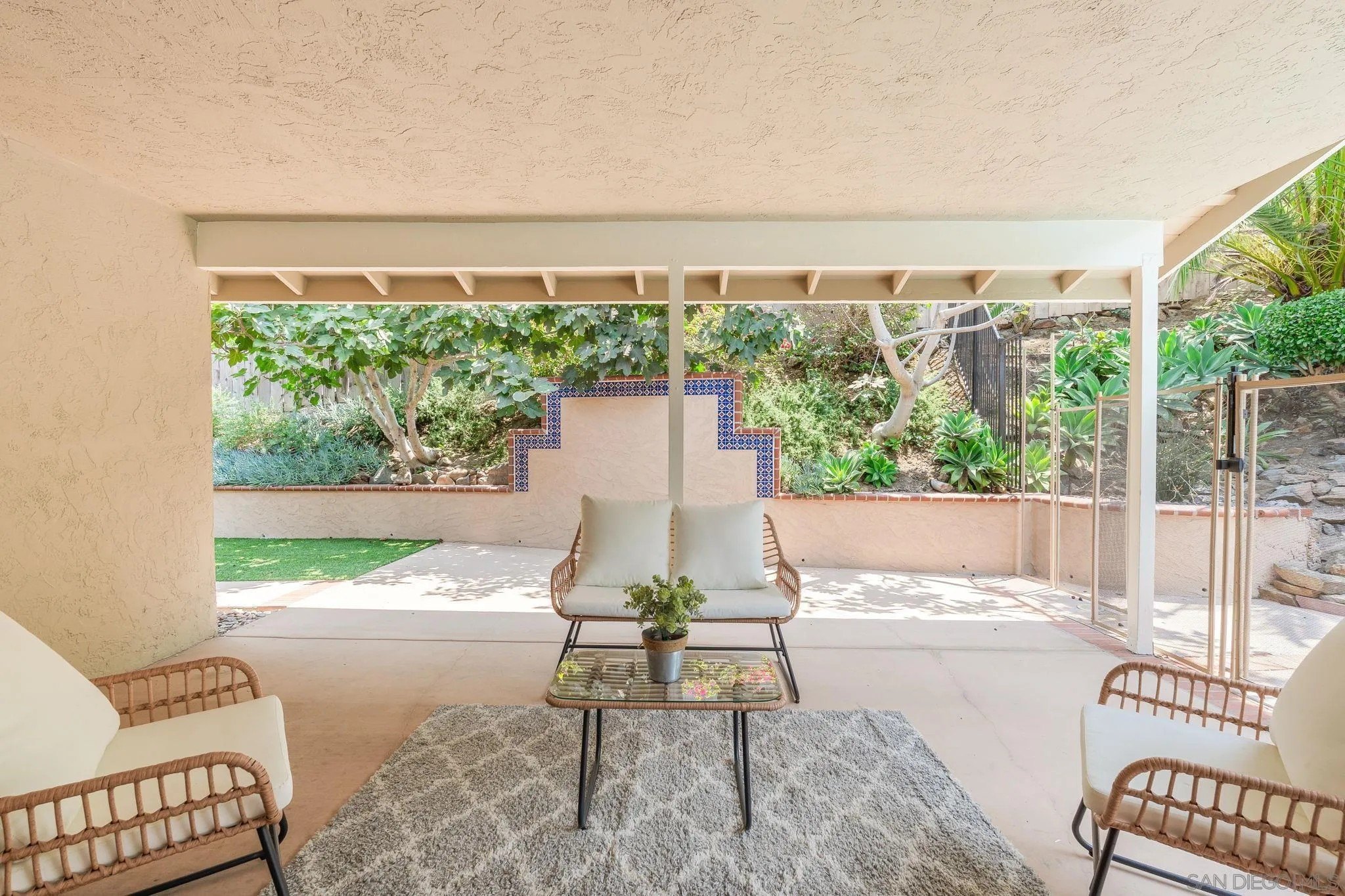 Wow ~ SINGLE LEVEL, ranch style home, tucked away on one of upper Del Cerro's finest cul-de-sacs! Private backyard w 3.5 ft deep heated lap swimming pool and easy-care lush landscaping featuring mature palm trees. Large, covered patio/loggia serves as Outdoor Living Space w dedicated bar-b-q area ~ perfect for outdoor entertaining! Beautiful kitchen w granite countertops, large peninsula island, KitchenAid double oven, Bosch dishwasher, plenty of pantry space! Entire home has fresh paint inside/out in light, bright neutral palette to complement your modern or traditional style! Enjoy an interior Laundry Room connected to a 2-car garage complete w workbench! 4th BDR easily used as Den or Office!