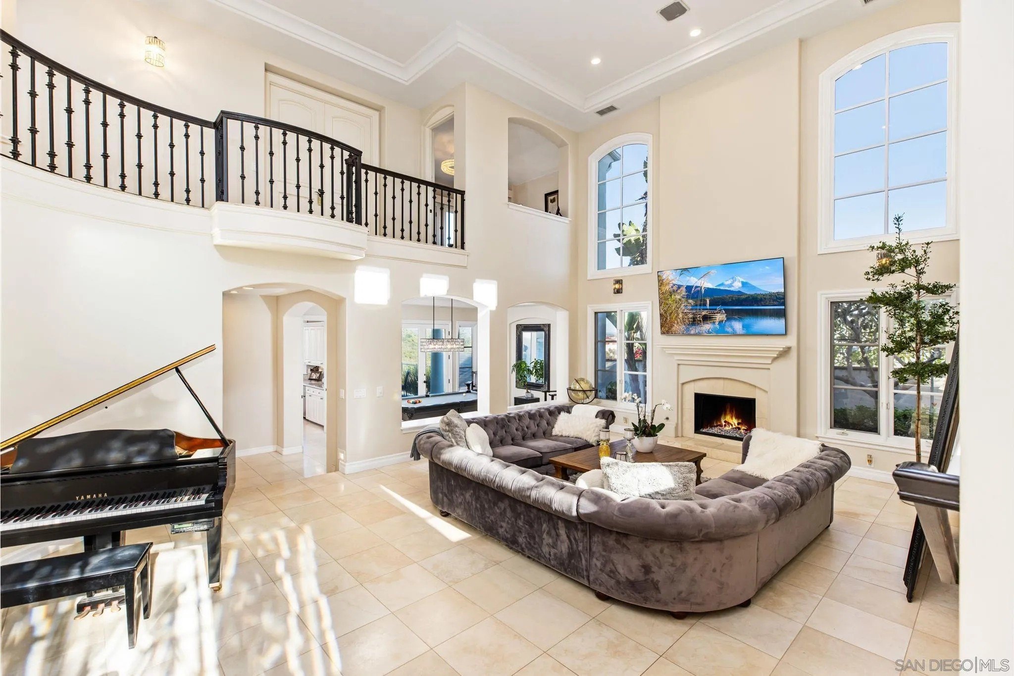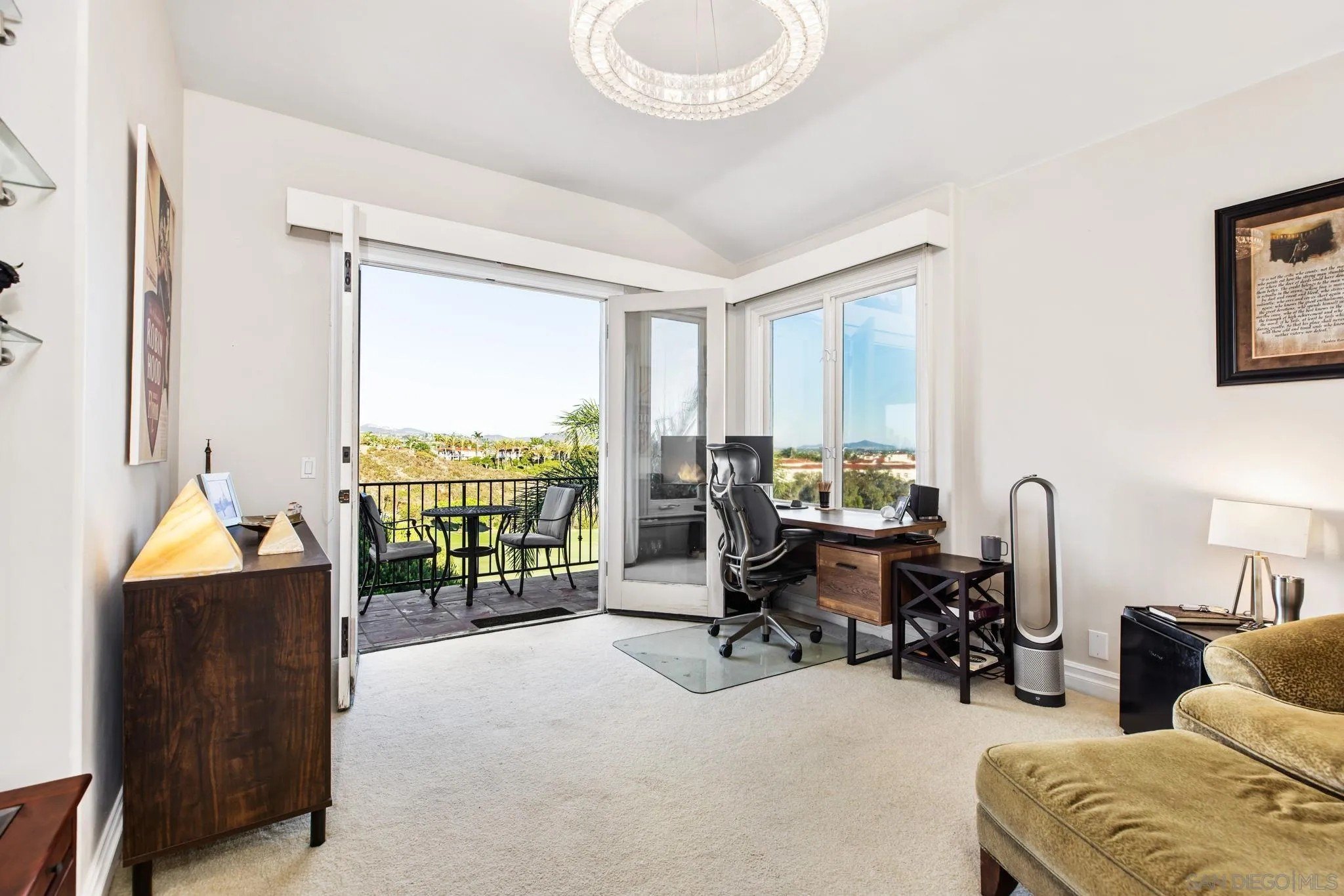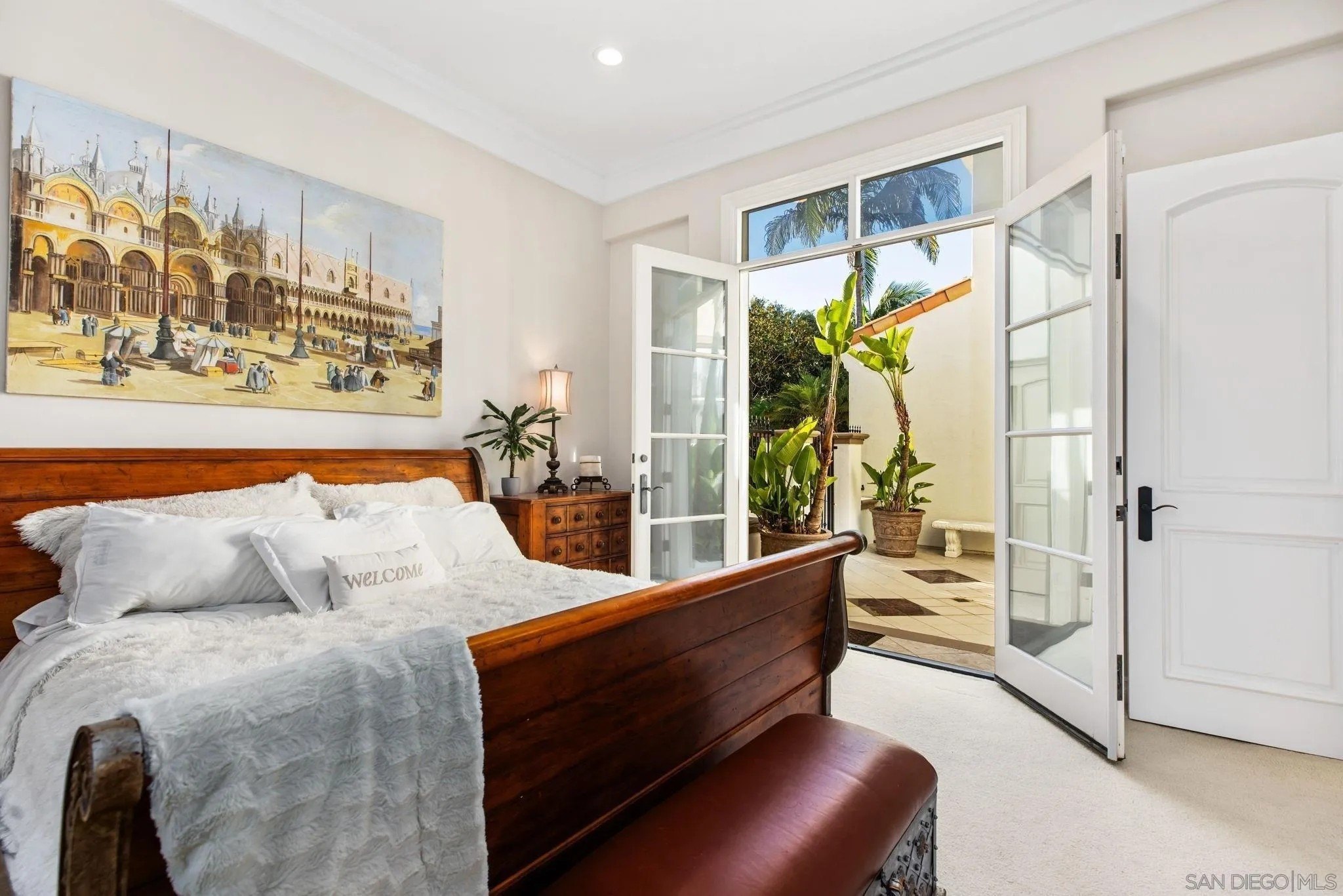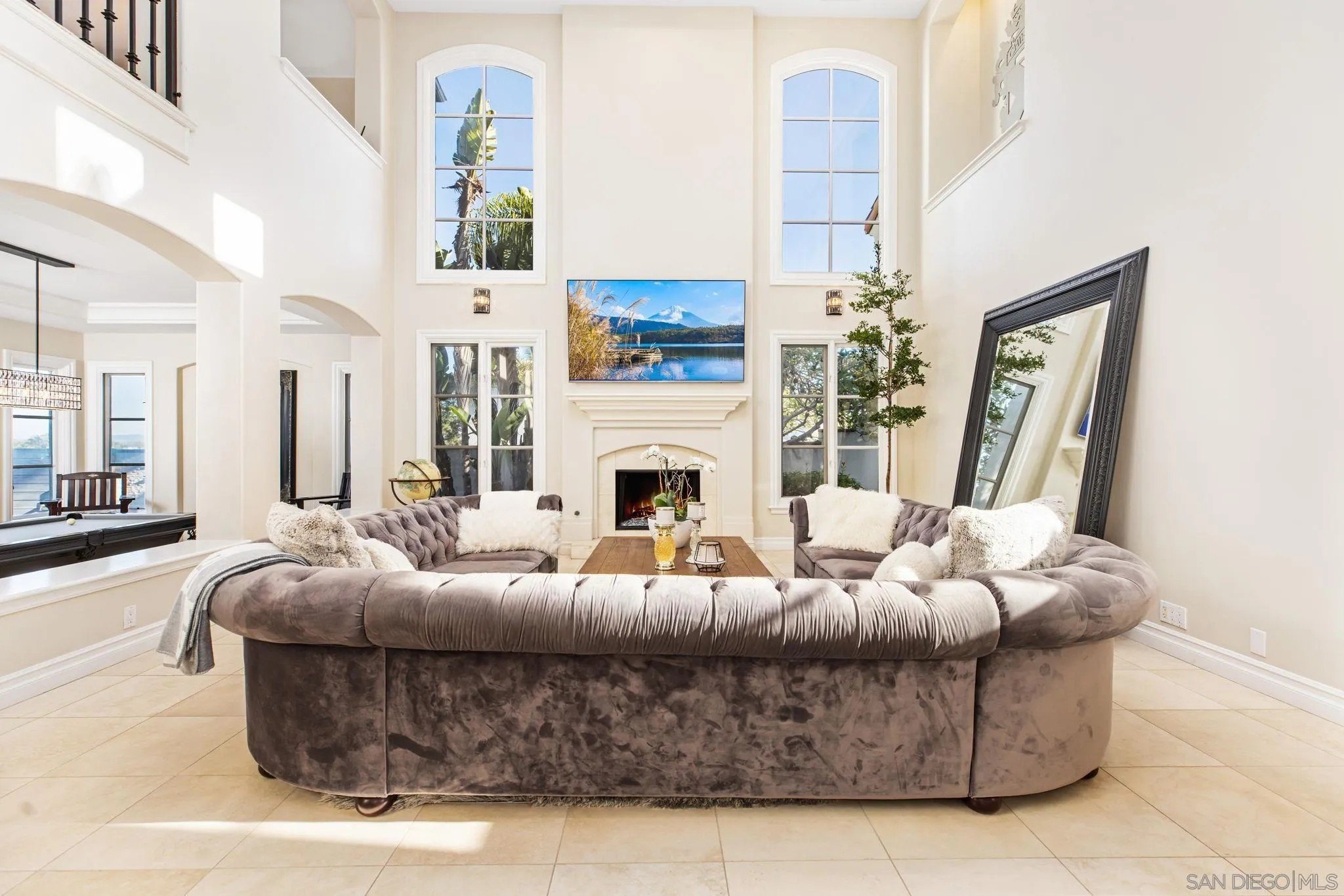 Located in the highly sought out gated community of Aviara Point, this custom-built home offers incredible 180 degrees views of the Aviara Golf Course and surrounding mountains! The home blends comfort, privacy, and functionality in a peaceful and scenic setting. The private backyard is an entertainers dream that includes a pool with electric cover, spa, fire pit, putting green, built-in BBQ, and even an outdoor shower -all surrounded by lush landscaping and open views of the 7th hole. Enjoy California's indoor/outdoor living at its finest! As you step inside the home, you're welcomed by a light-filled entry with high ceilings and a sweeping staircase. The open-concept great room features large windows that frame spectacular views, while the gourmet kitchen is fully equipped with stainless steel appliances, double ovens, built-in fridge, and a large center island -ideal for both everyday living and grand entertaining. The layout includes two spacious downstairs suites with private entrances-perfect for guests, multi-generational living, or private maid's quarters. Upstairs, the luxurious primary suite offers a sitting area with fireplace, spa-inspired bath with Jacuzzi tub, large walk-in shower, dual walk-in closets, and beautiful wood french doors opening to a private balcony with endless views. Three additional en-suite bedrooms down the hall ensure comfort and privacy for all.