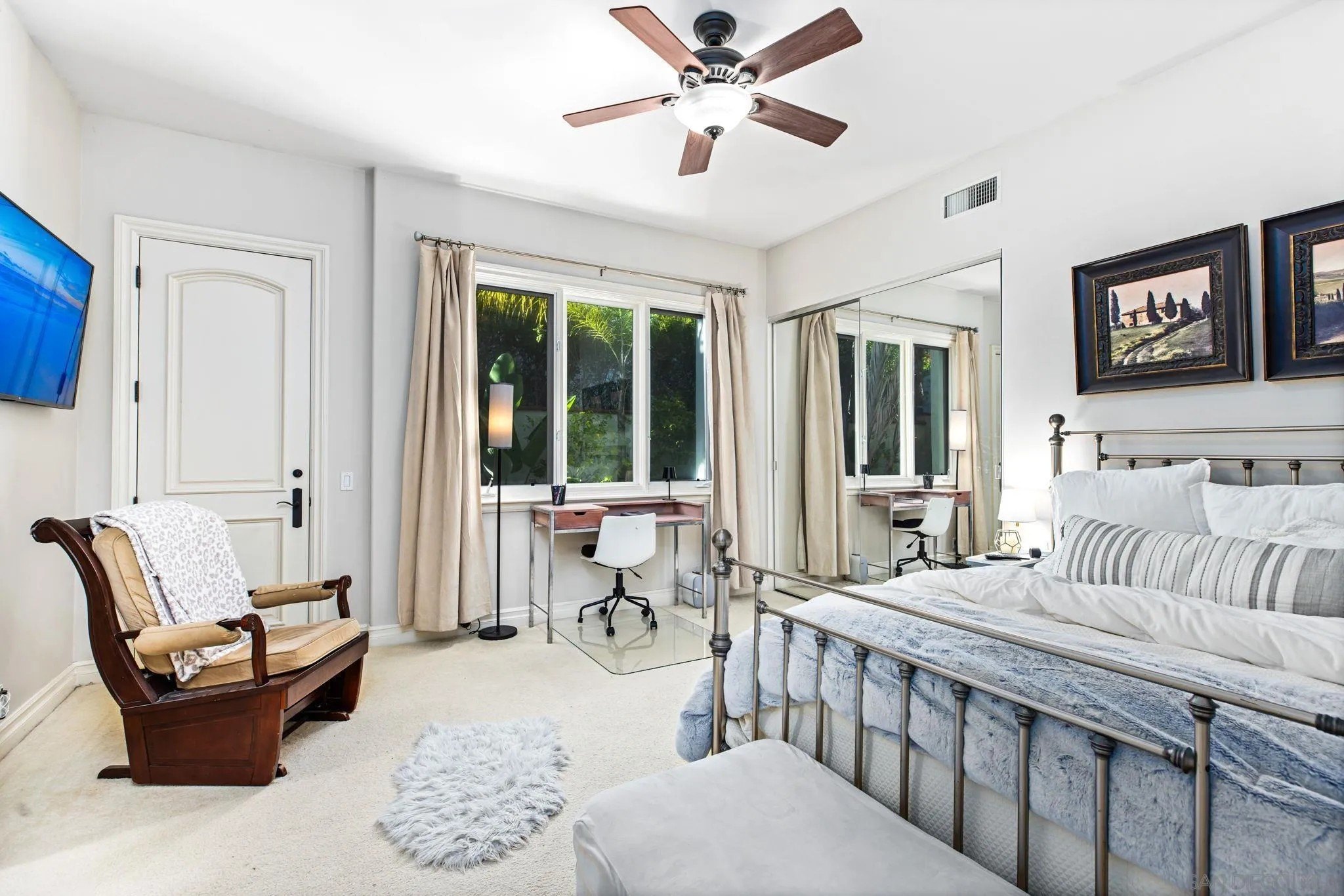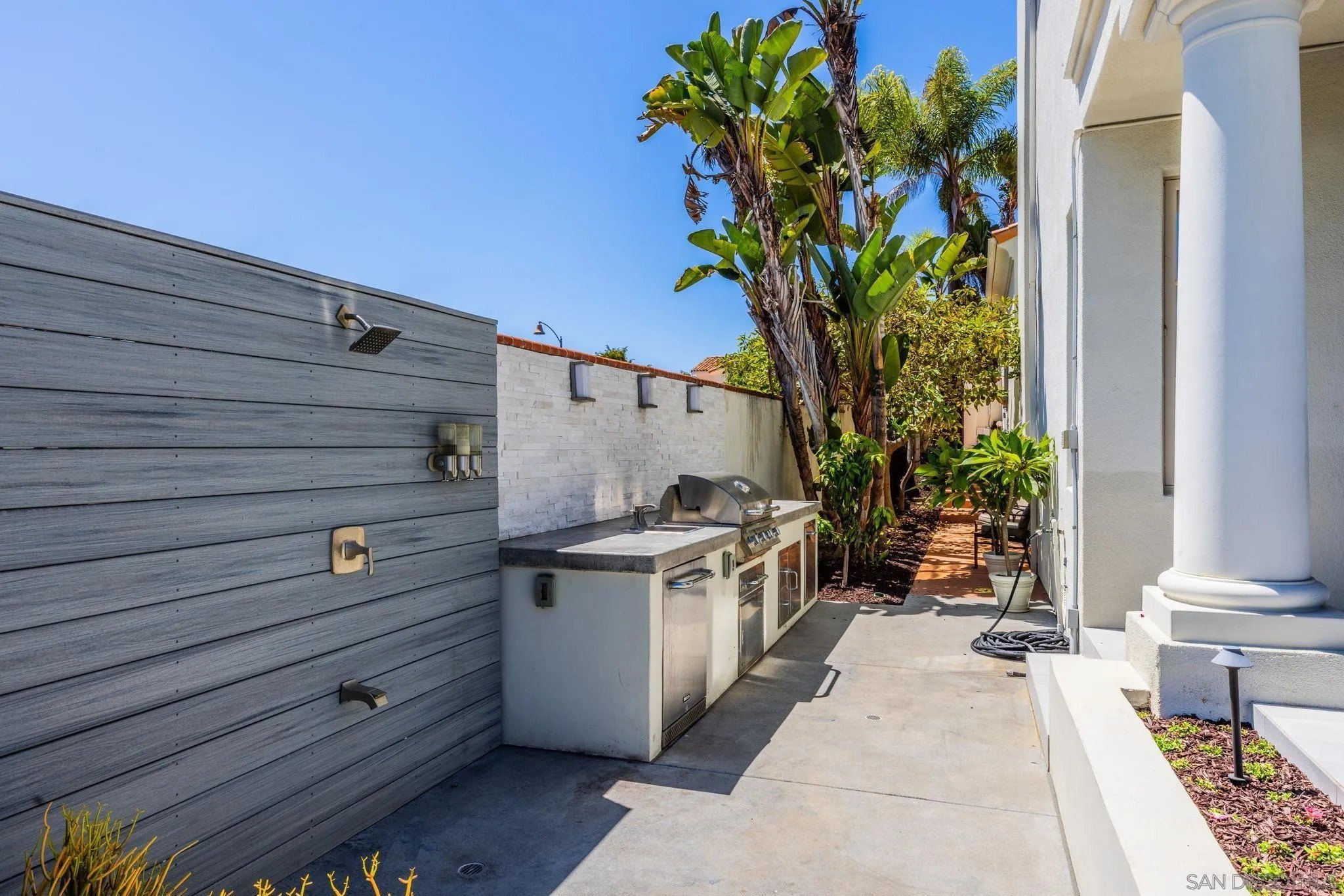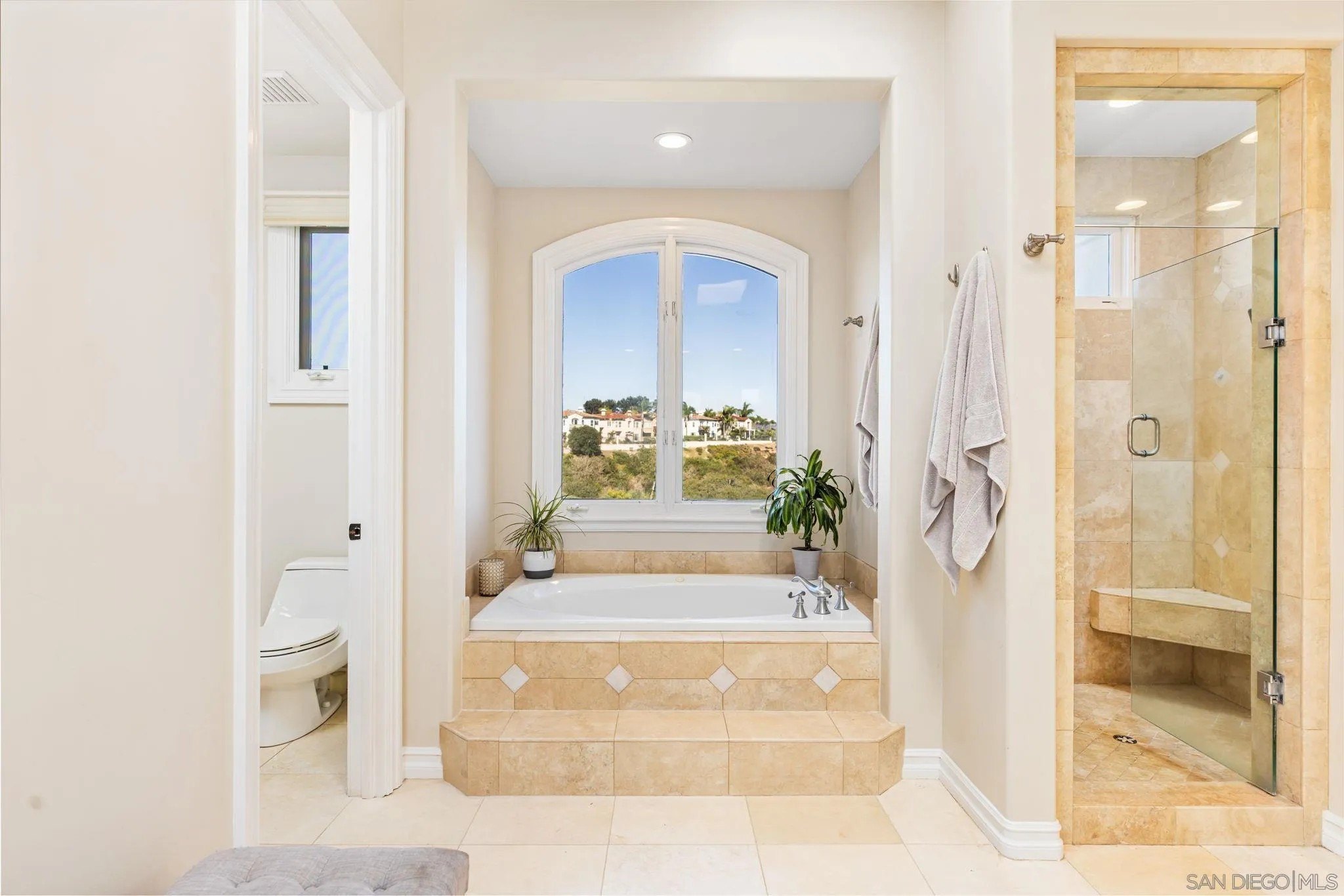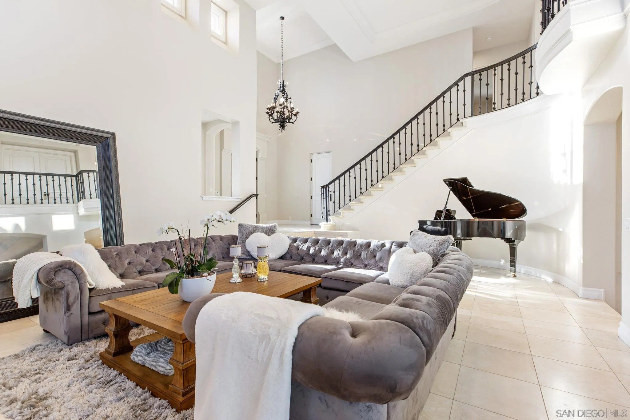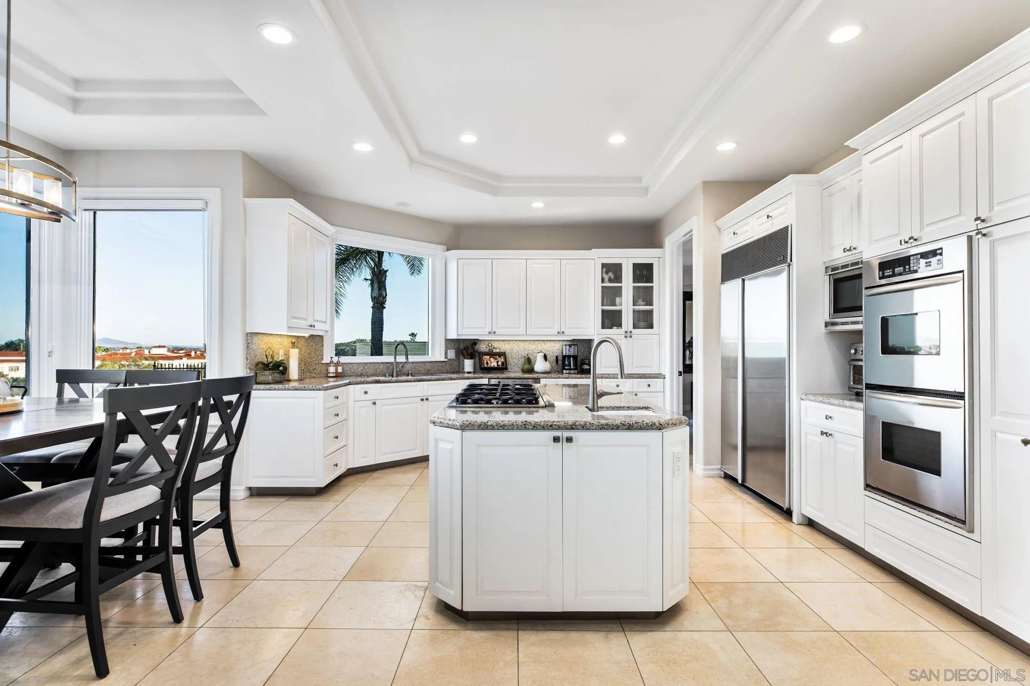 Located in the highly sought out gated community of Aviara Point, this custom-built home offers incredible 180 degrees views of the Aviara Golf Course and surrounding mountains! The home blends comfort, privacy, and functionality in a peaceful and scenic setting. The private backyard is an entertainers dream that includes a pool with electric cover, spa, fire pit, putting green, built-in BBQ, and even an outdoor shower -all surrounded by lush landscaping and open views of the 7th hole. Enjoy California's indoor/outdoor living at its finest! As you step inside the home, you're welcomed by a light-filled entry with high ceilings and a sweeping staircase. The open-concept great room features large windows that frame spectacular views, while the gourmet kitchen is fully equipped with stainless steel appliances, double ovens, built-in fridge, and a large center island -ideal for both everyday living and grand entertaining. The layout includes two spacious downstairs suites with private entrances-perfect for guests, multi-generational living, or private maid's quarters. Upstairs, the luxurious primary suite offers a sitting area with fireplace, spa-inspired bath with Jacuzzi tub, large walk-in shower, dual walk-in closets, and beautiful wood french doors opening to a private balcony with endless views. Three additional en-suite bedrooms down the hall ensure comfort and privacy for all.