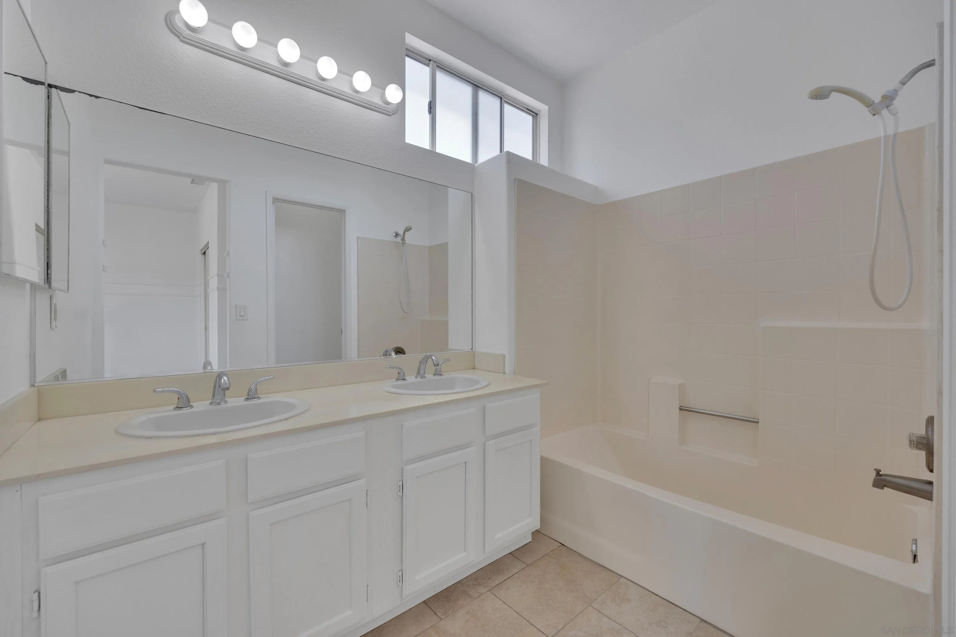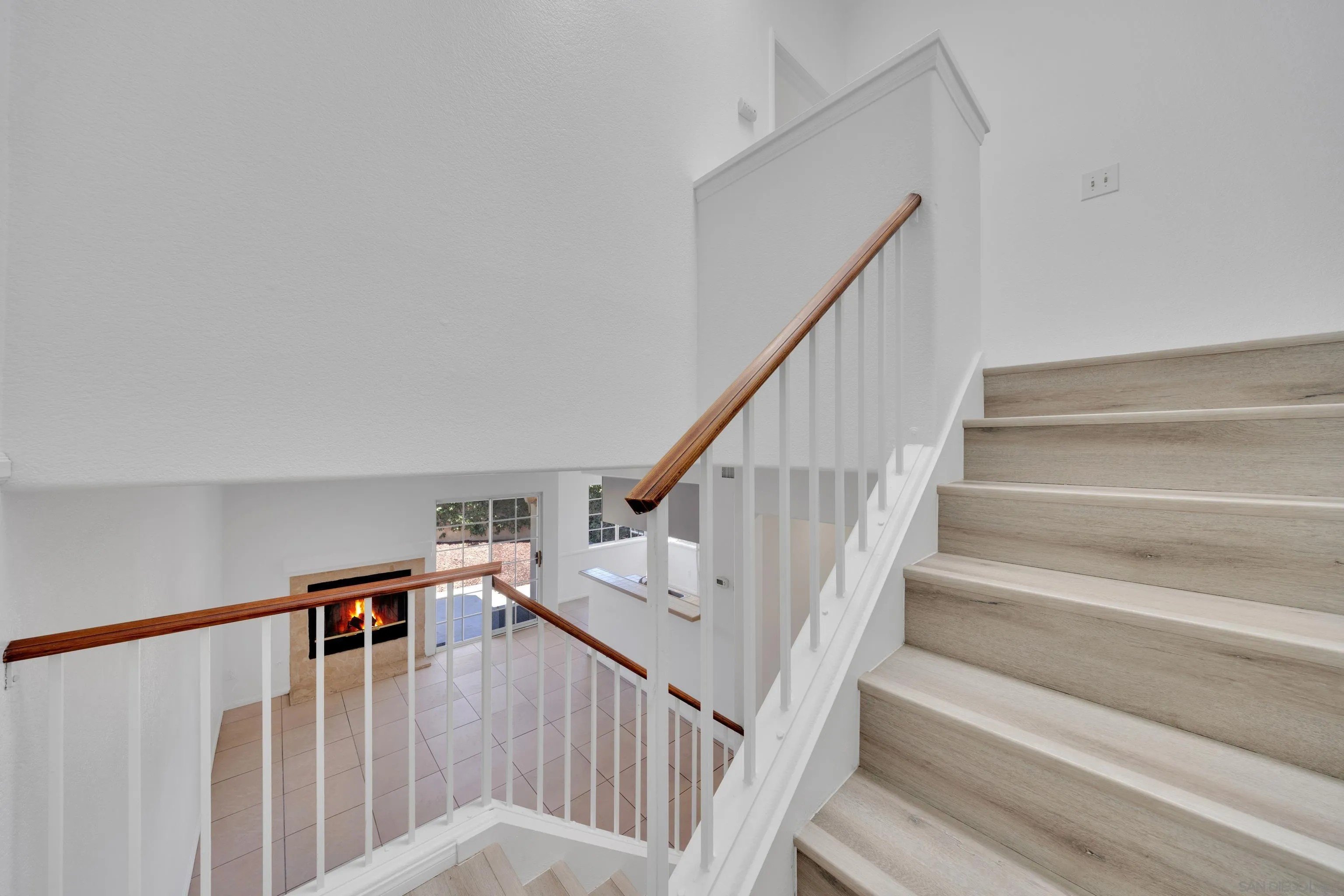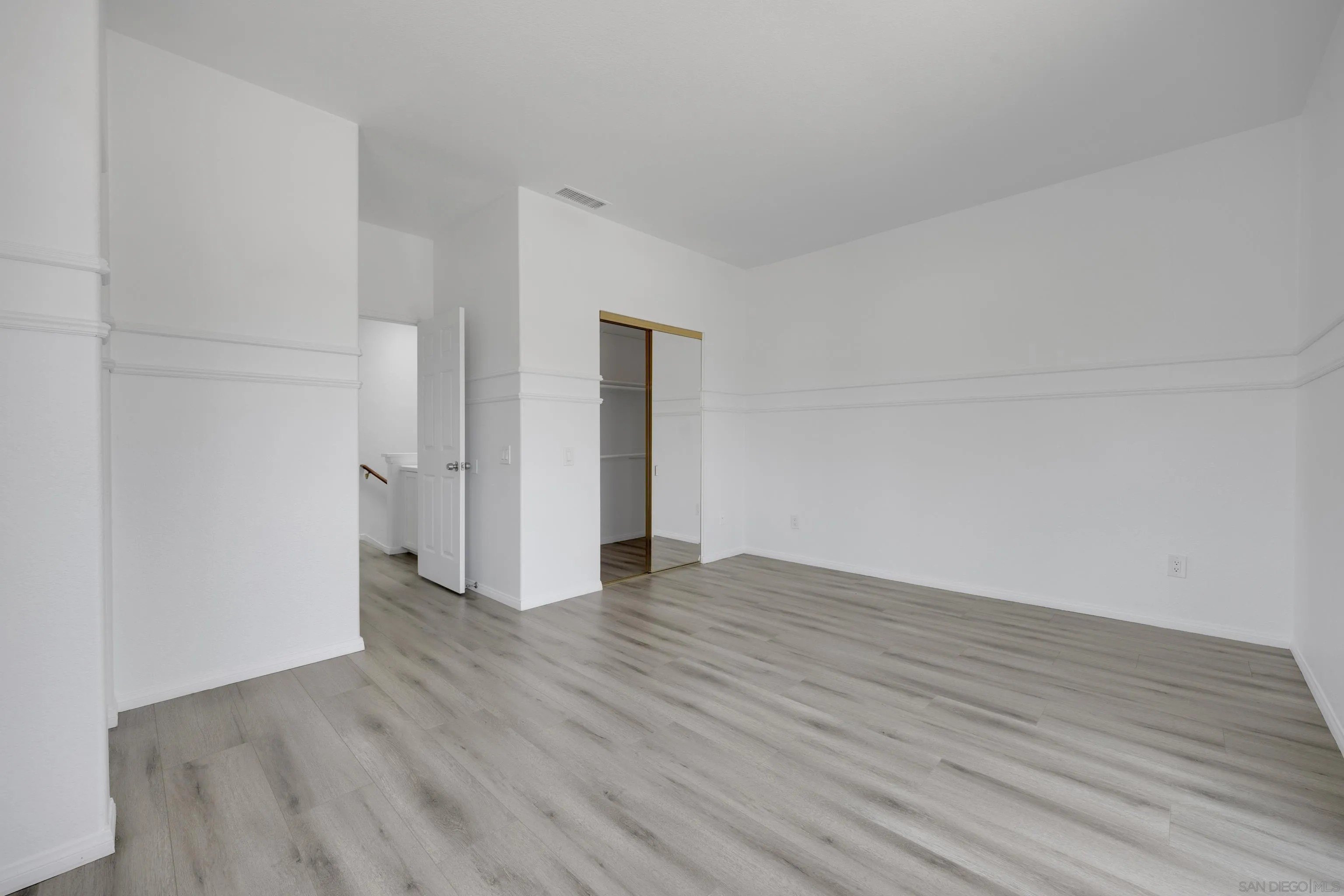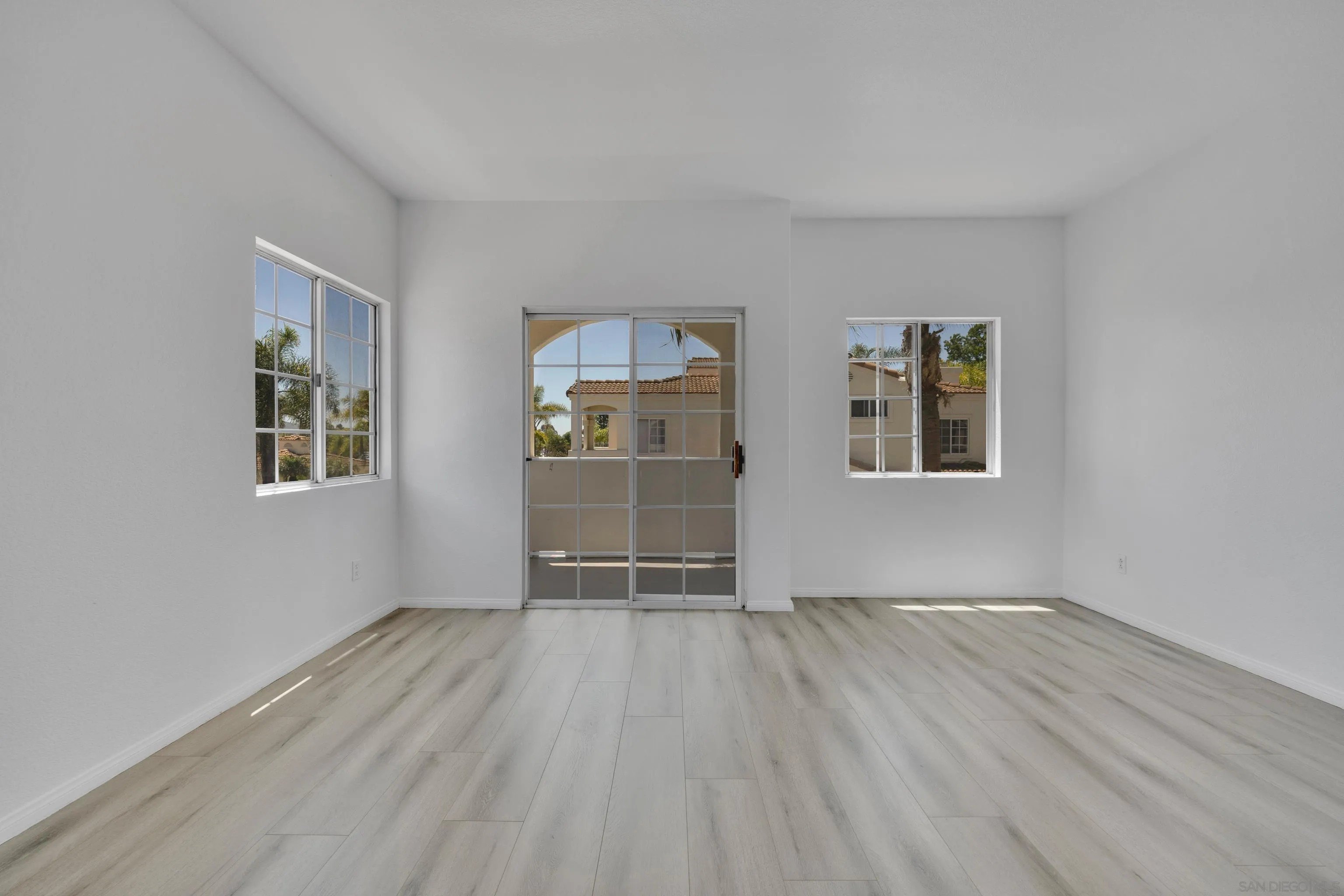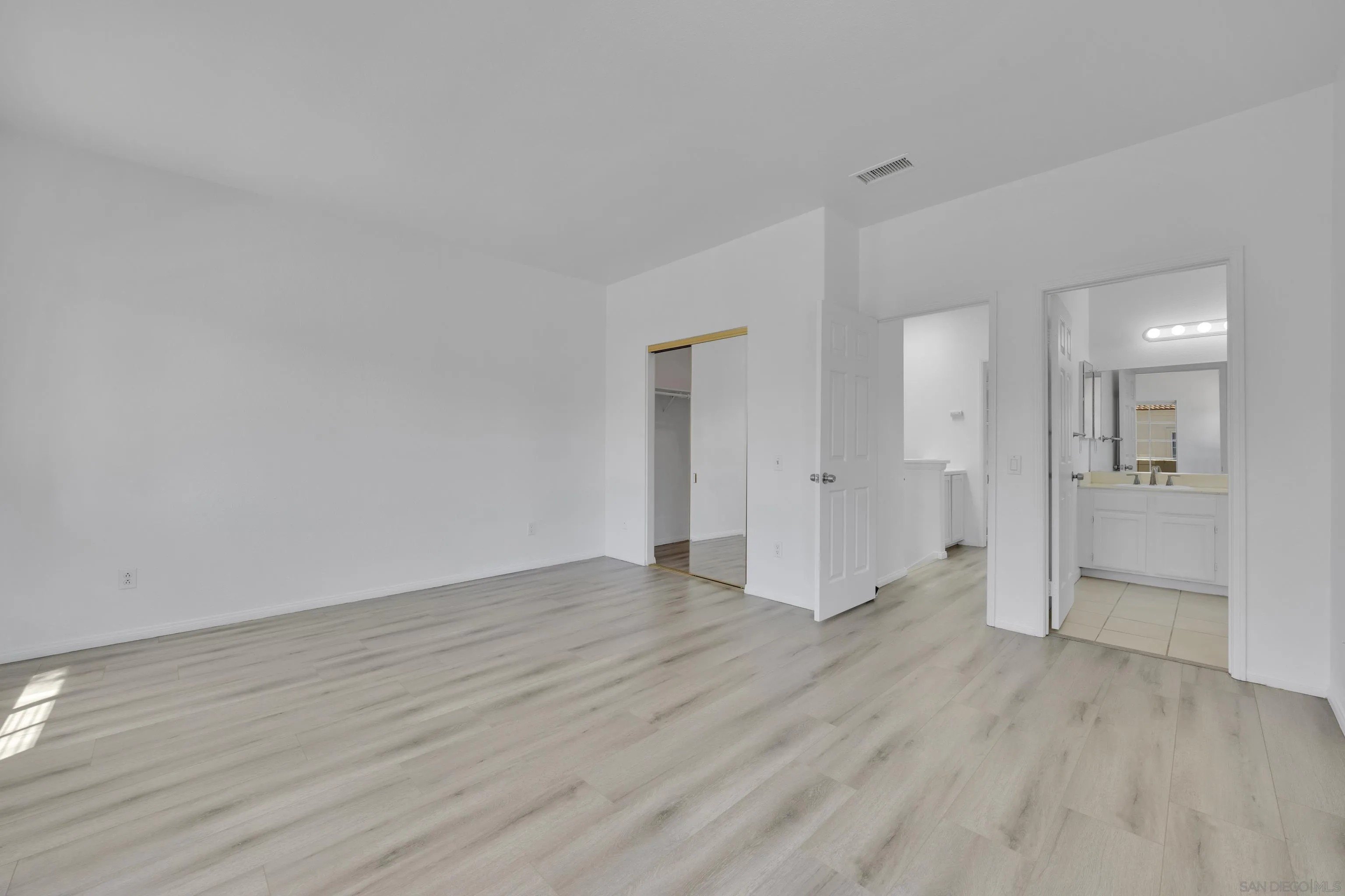 Charming townhome with dual master suites near Cal State San Marcos and Palomar College. This immaculate 2 bedroom, 2.5 bathroom corner unit townhome is located in the highly sought-after gated community of Villa Aspara. With only one shared wall, the well-designed floor plan offers both privacy and comfort, making it ideal for families or roommates. The home features dual master bedrooms upstairs, each spacious and filled with natural light. The main master includes a walk-in closet, and both bedrooms offer plenty of room to unwind. Downstairs, you'll find a convenient half bath for guests and in-garage laundry for added ease. The living area boasts beautiful new flooring and a cozy fireplace. Step out to your own private backyard space, ideal for grilling, entertaining, or playtime. Villa Aspara offers peaceful grassy areas, quiet streets, a well-sized community pool, and two lovely courtyards with fountains and lush landscaping. The location is unbeatable; just minutes from Cal State San Marcos, Palomar College, major freeways, schools, coffee shops, restaurants, and entertainment. This is a rare opportunity to own a well-cared-for home in a quiet, convenient community.