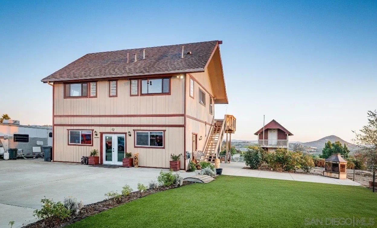Your Valley Center Playground Awaits! Ever dreamed of a home that works as hard as you do? Welcome to 31141 Saddleback Road. This isn't just a property; it's a lifestyle upgrade on 2.5 flat, usable acres. The main residence features a bright upper level with hardwood flooring in the kitchen/dining area and a full-length deck with Trex decking and modern metal railings. The lower level offers a spacious flex area, a custom bathroom with a clawfoot tub, a bar with a sink/fridge, and laundry room. The Shop: A massive