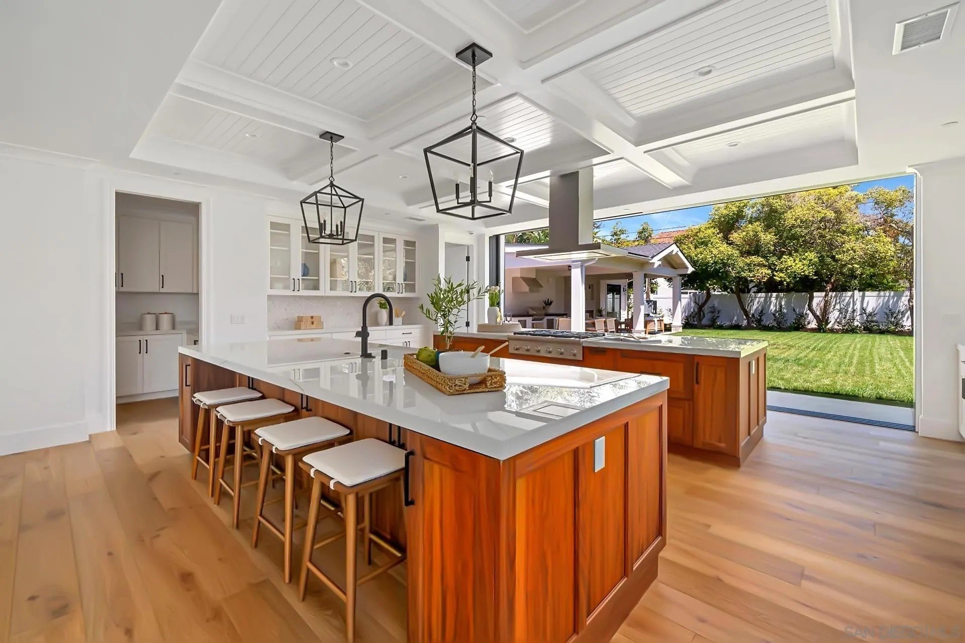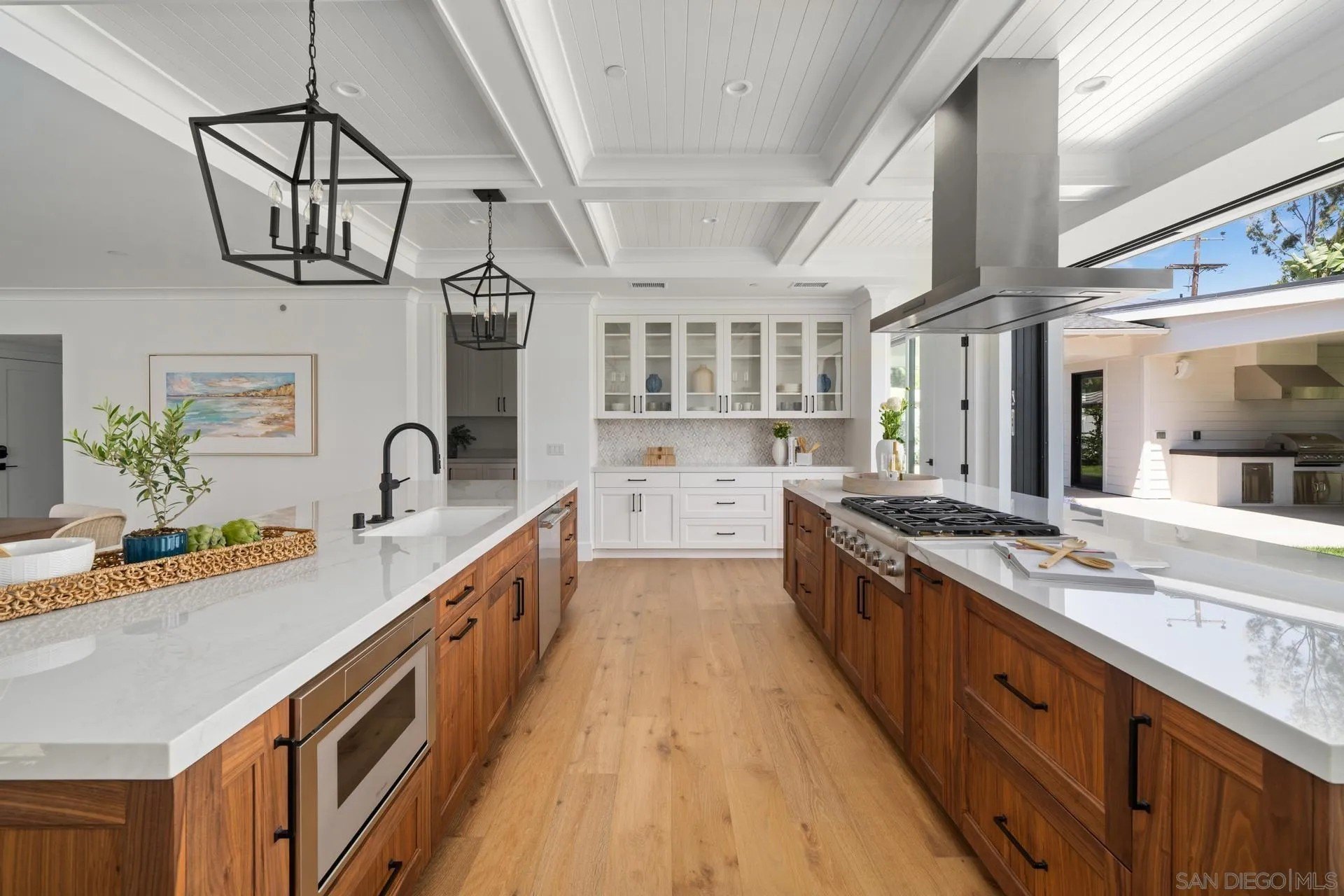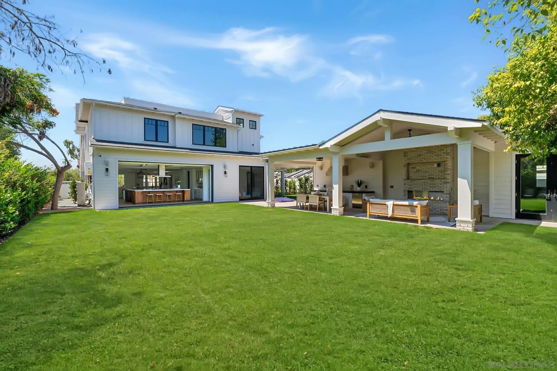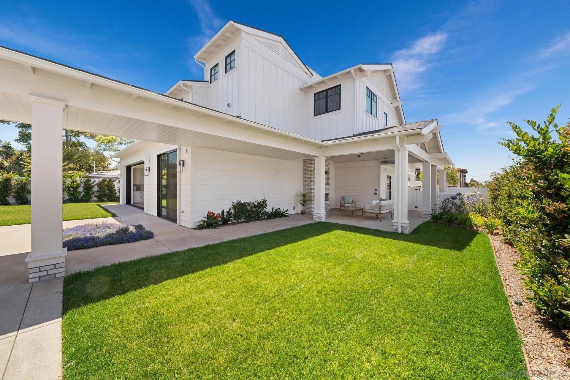 Welcome to a truly rare offering in Coronado’s sought-after Country Club Estates—a newly constructed Coastal Farmhouse designed by Christian Rice Architects, Inc. Years in the making, this legacy property combines timeless architecture, exceptional craftsmanship, and a layout tailored for Southern California’s signature indoor-outdoor lifestyle. Privately situated on a desirable cul-de-sac, the main residence offers five generously sized en suite bedrooms, including an upstairs bonus room ideal as an office, studio, or additional lounge. At its heart lies a showpiece chef’s kitchen with dual islands, premium Thermador appliances, an oversized walk-in pantry, and abundant storage—designed for effortless entertaining and elevated everyday living. The home’s open concept living and dining spaces flow seamlessly to the outdoors, revealing multiple gathering areas perfect for hosting or relaxing. The nearly 11,000 sq ft lot is a rare find in Coronado, allowing for expansive grounds and exceptional privacy. A standout feature is the private, detached two-bedroom, two-bath ADU, complete with its own covered outdoor living room & fireplace - ideal for extended family & guests while still connecting harmoniously to the main home if desired. More than just a remarkable home, this is a place where memories will be made, traditions will be honored, and generations will gather for years to come.